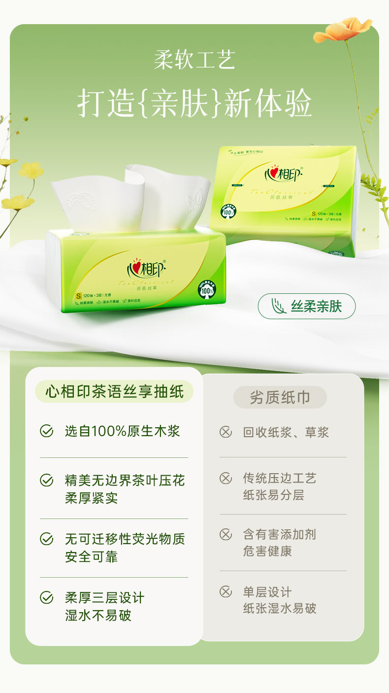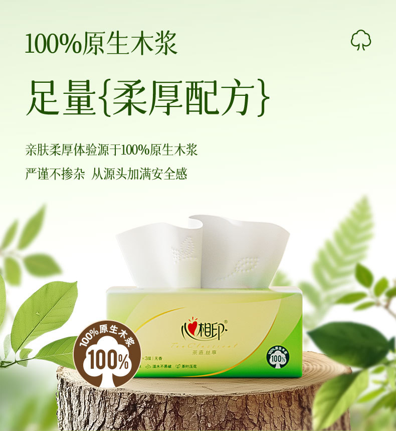 心相印抜き紙超靭ティッシュ茶語糸享シリーズ赤ちゃんはナプキン3層100引き紙を使うことができます。