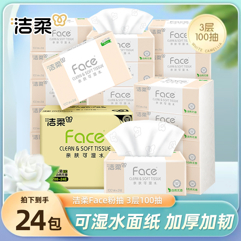 Jierou ティッシュ パウダーフェイス ウェットティッシュ 3 層 100 ティッシュ 24 パック ナプキン トイレット ペーパー ティッシュ