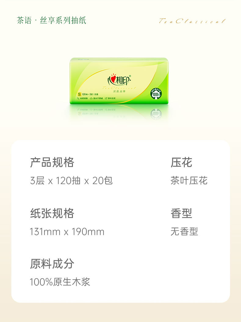 心相印吸紙茶語フルケース20パックナプキンティッシュ手ティッシュ母子適用家庭卸売りが安い