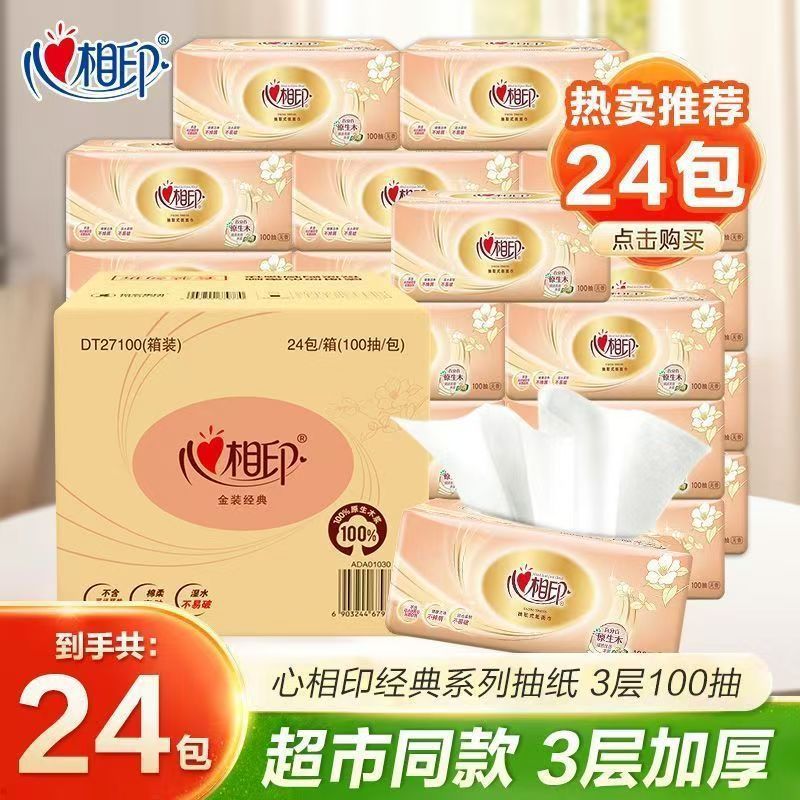 心相印抜き紙金装経典3層100引き紙ナプキン紙ティッシュ紙家庭用ティッシュ実恵装単包