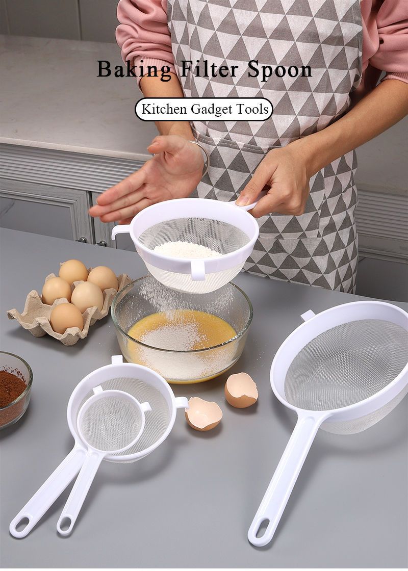 プラスチック小麦粉ふるい4点セット手持ちフィルターキッチンフィルタースプーン