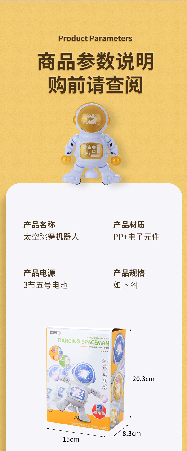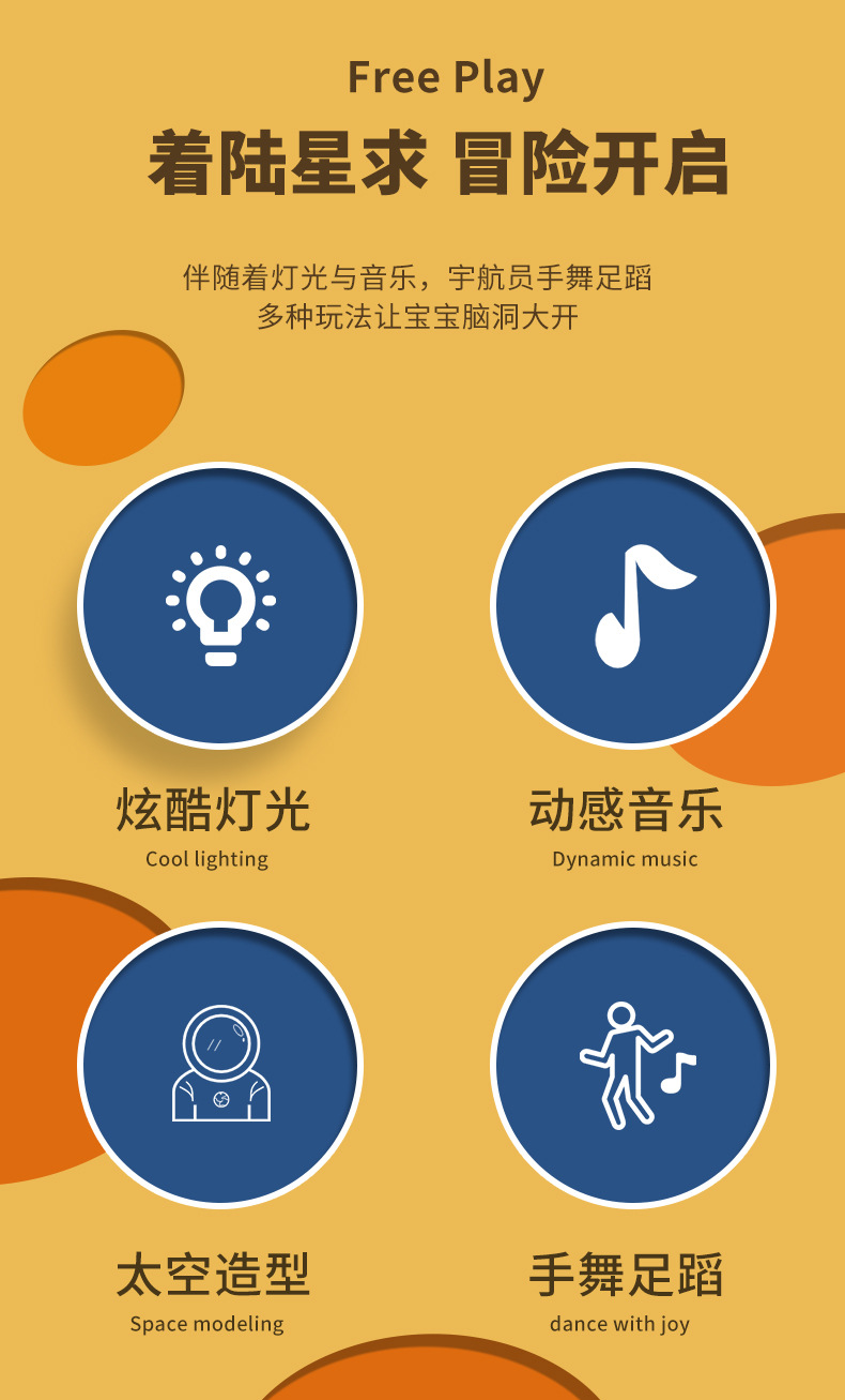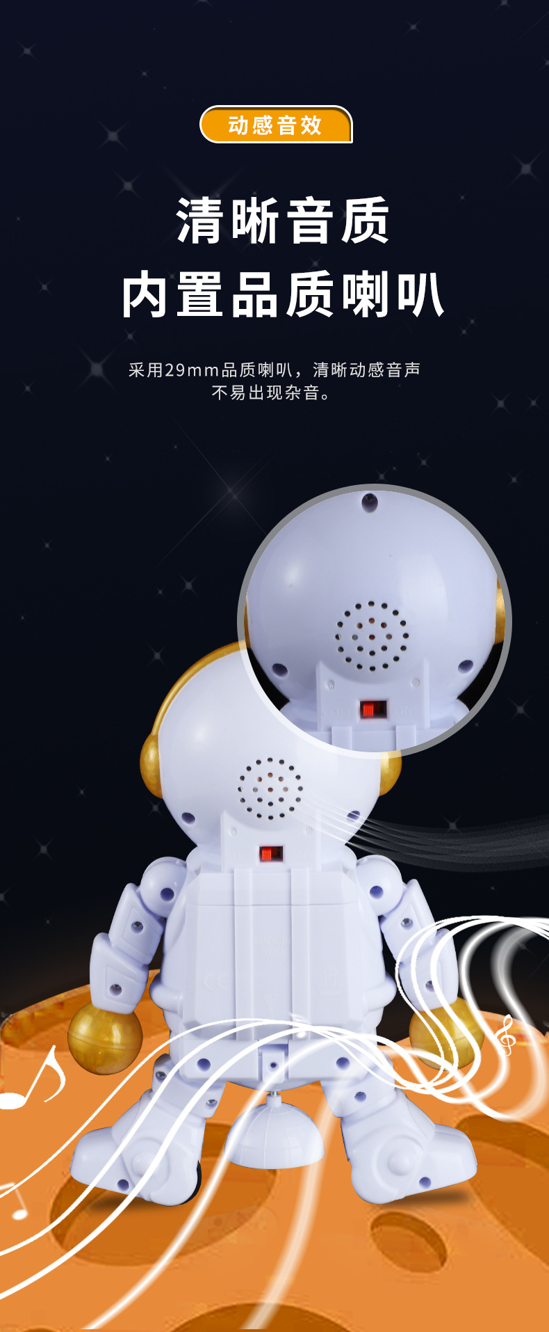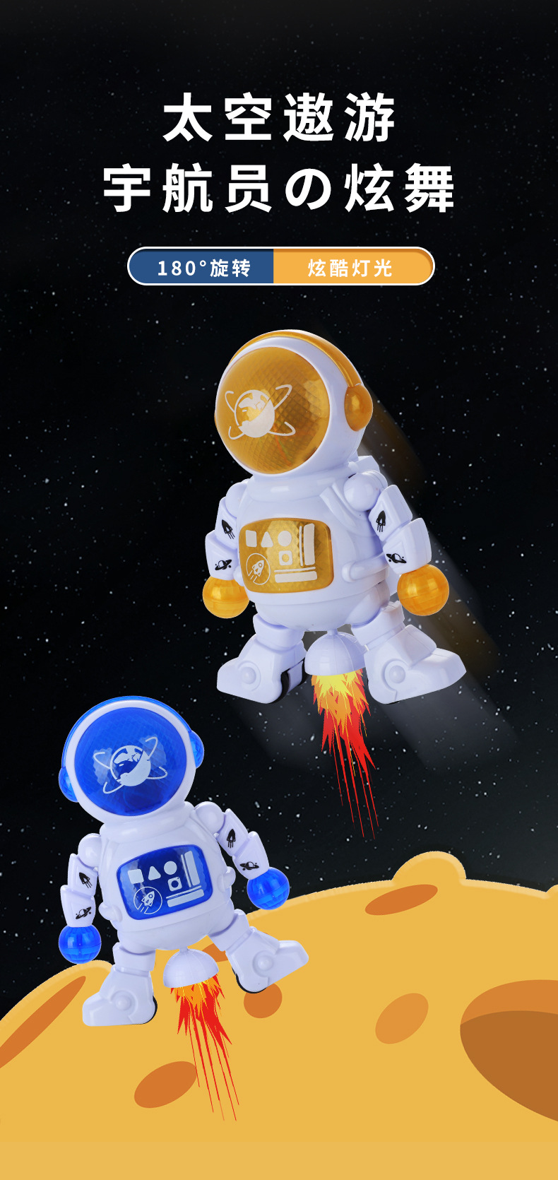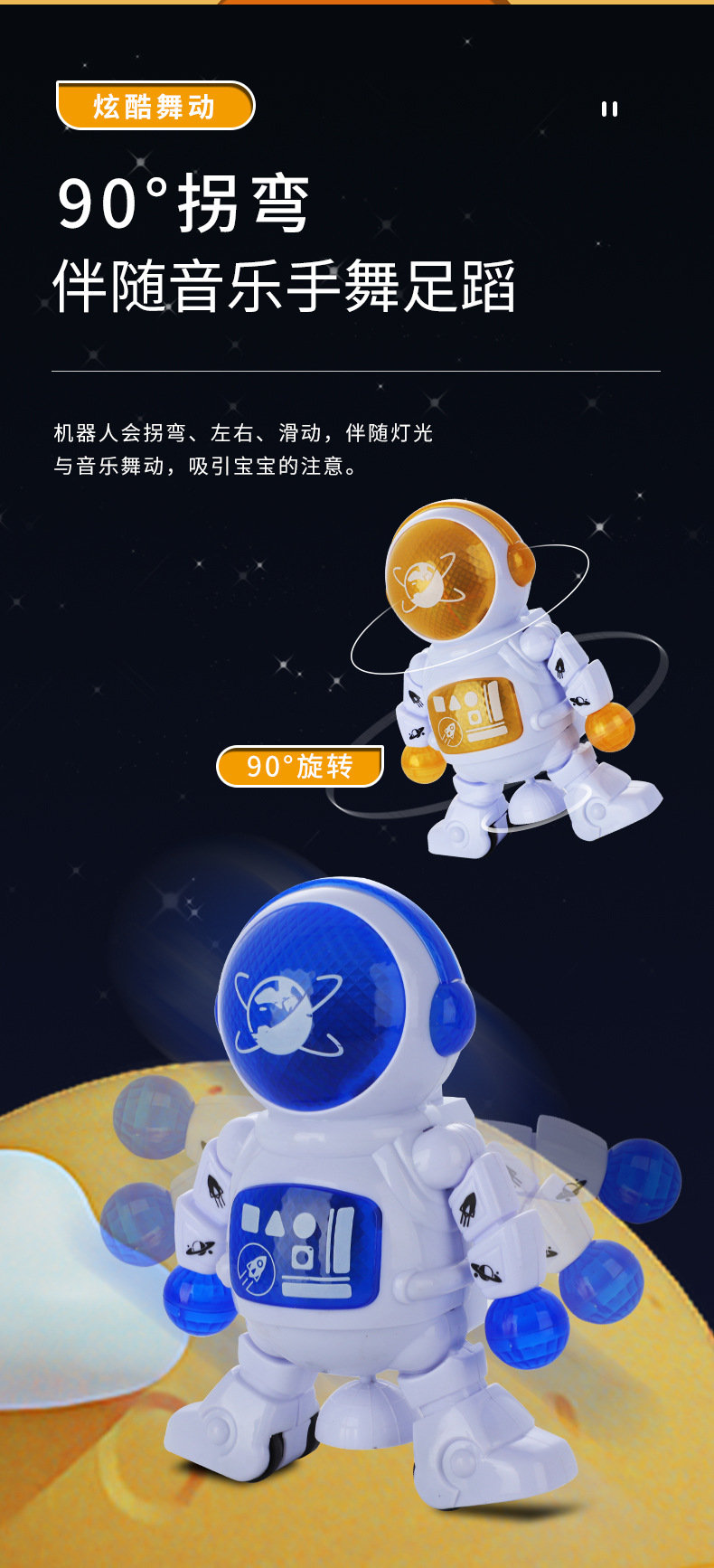 赤ちゃんや子供向けの宇宙飛行士型電動ロボット、歌って踊る機能付き、回転練習もできる、大型ギフト玩具、屋台販売