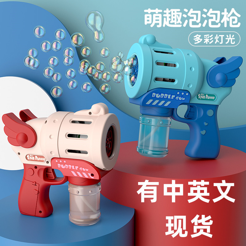 大きいサイズのネットの赤い澄海区の天使の泡銃の子供の電動の同型の泡の機械の照明は泡のおもちゃの卸売りを吹きます。