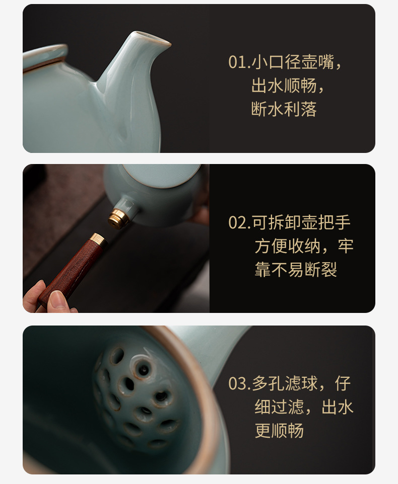 新台湾柏韻汝窯工夫茶器セット氷裂釉中国式復古汝窯オフィス家庭用ティーポット