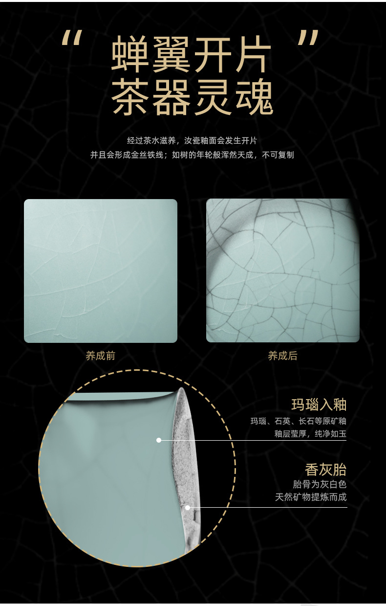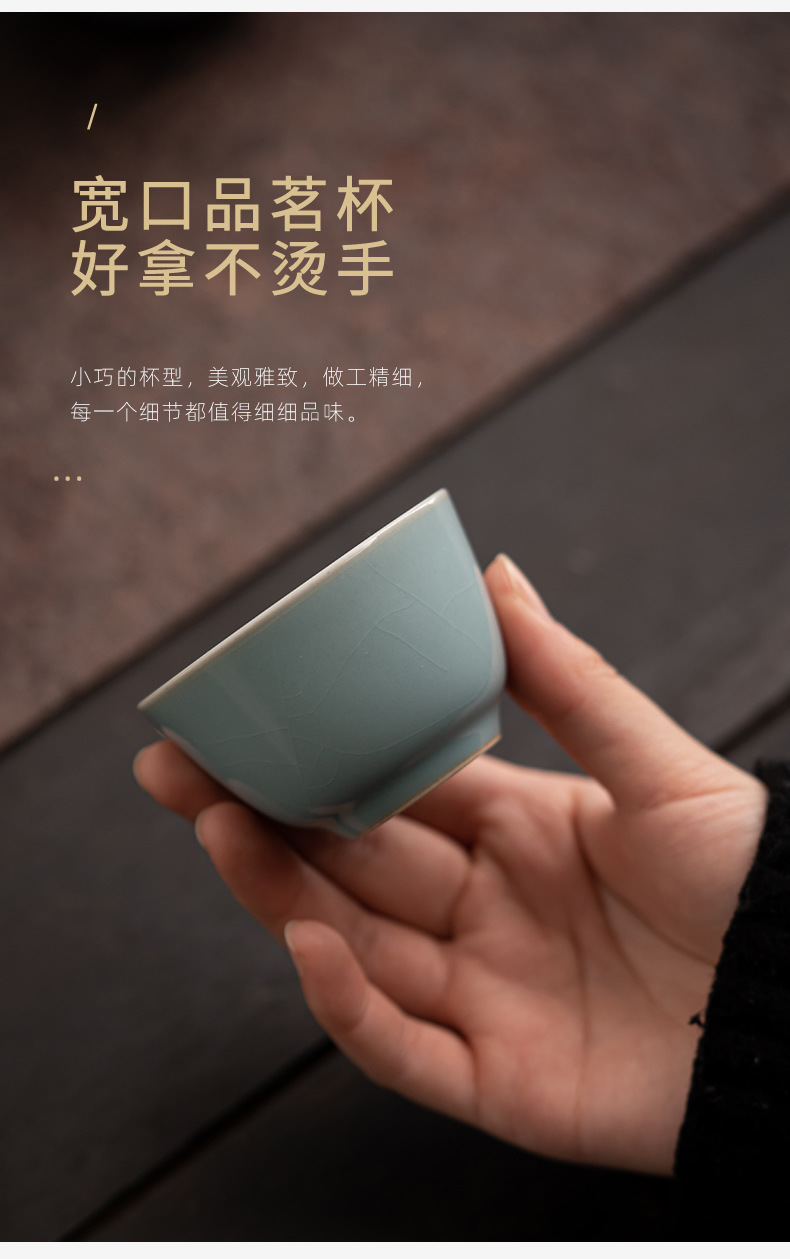 台湾 Bai Yun Ru 窯マスターカップアイスクラックオープンピースはティーカップティーカップティーカップ Ru 磁器紺碧釉ティーセットを上げることができます