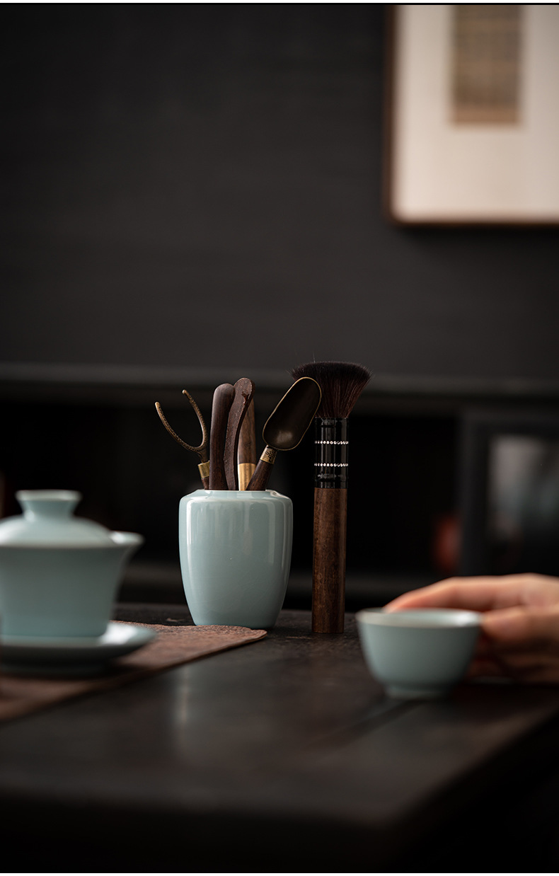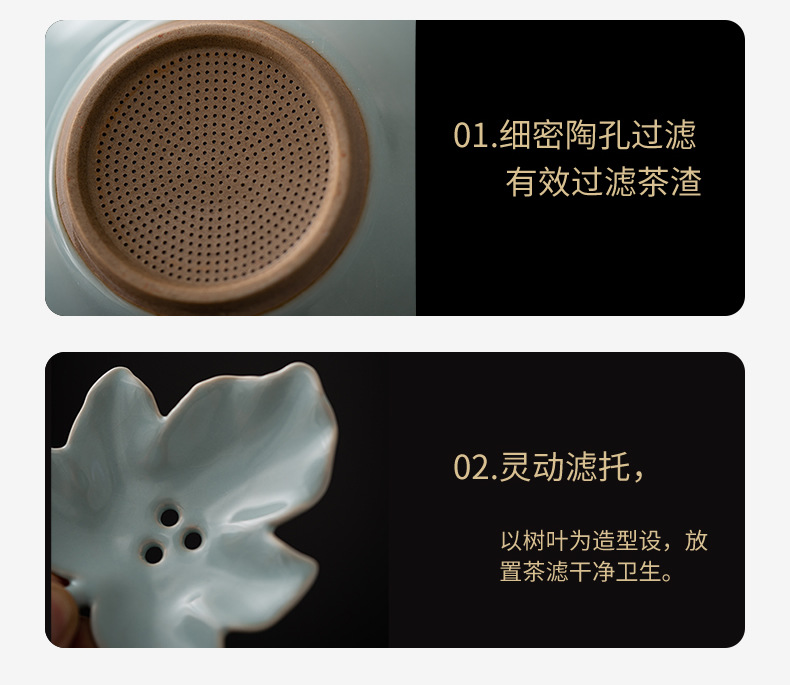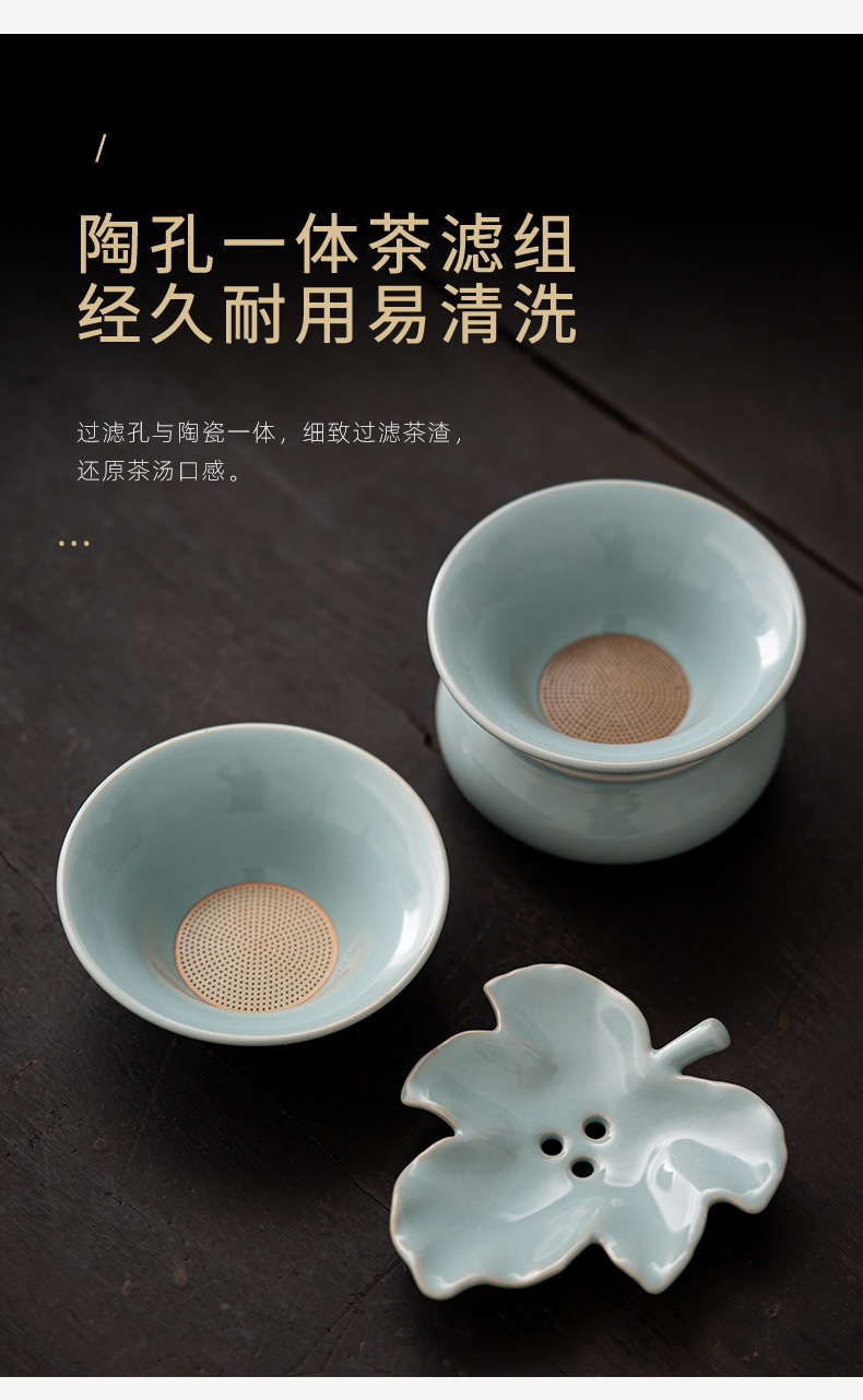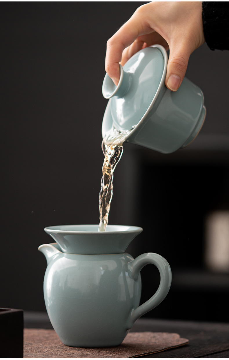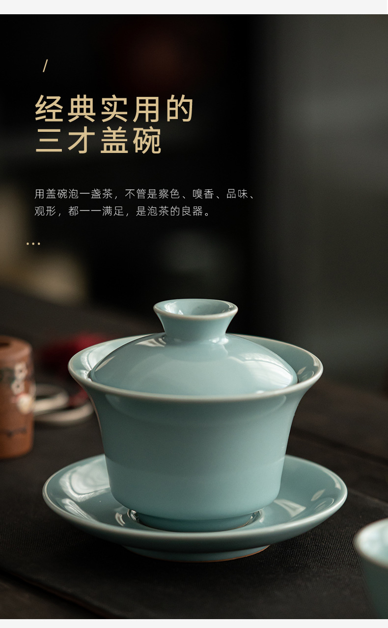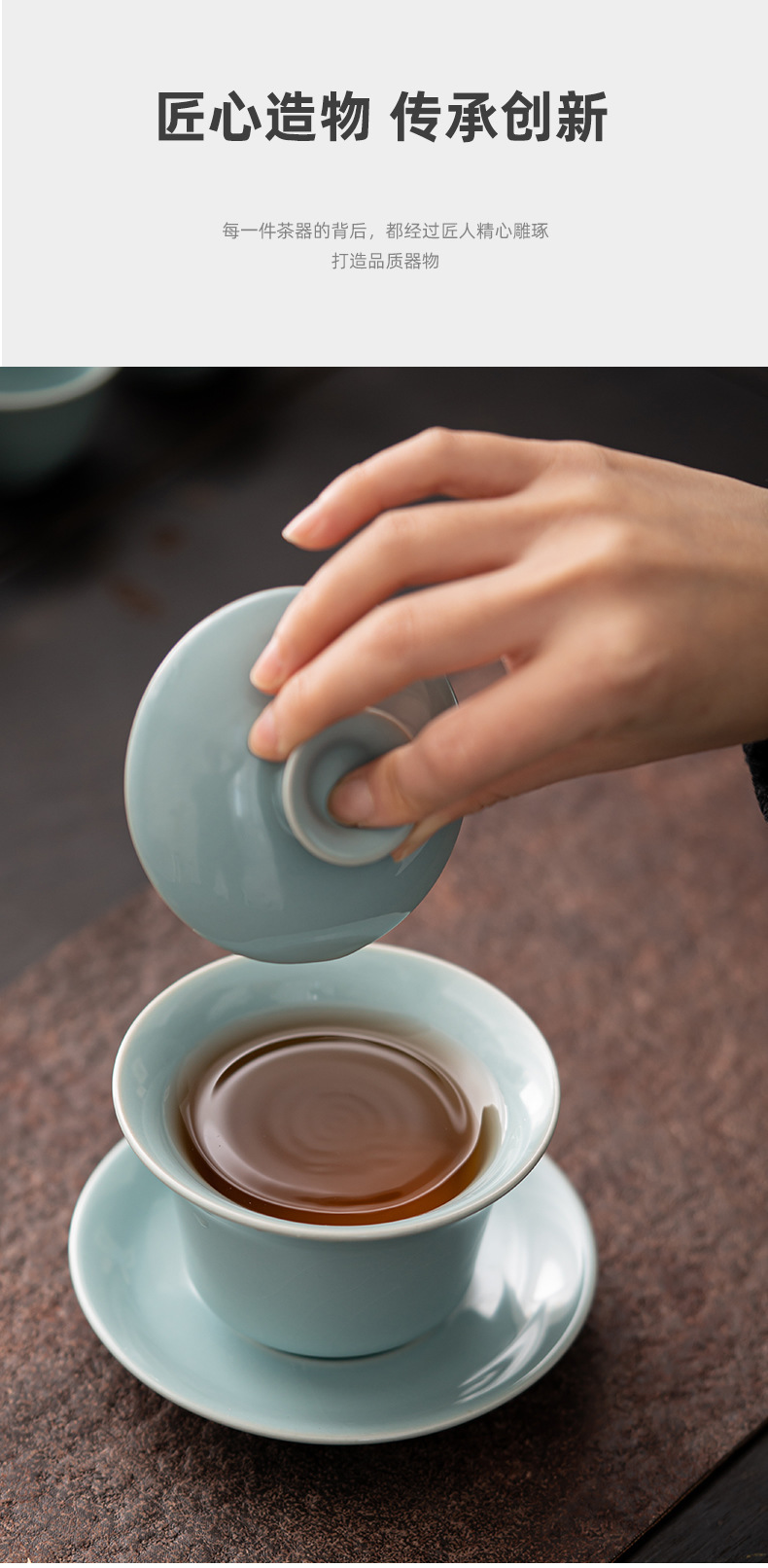 汝窯天青釉カンフー茶器セット家庭用オフィスお茶を入れて碗のお茶をかぶせます。
