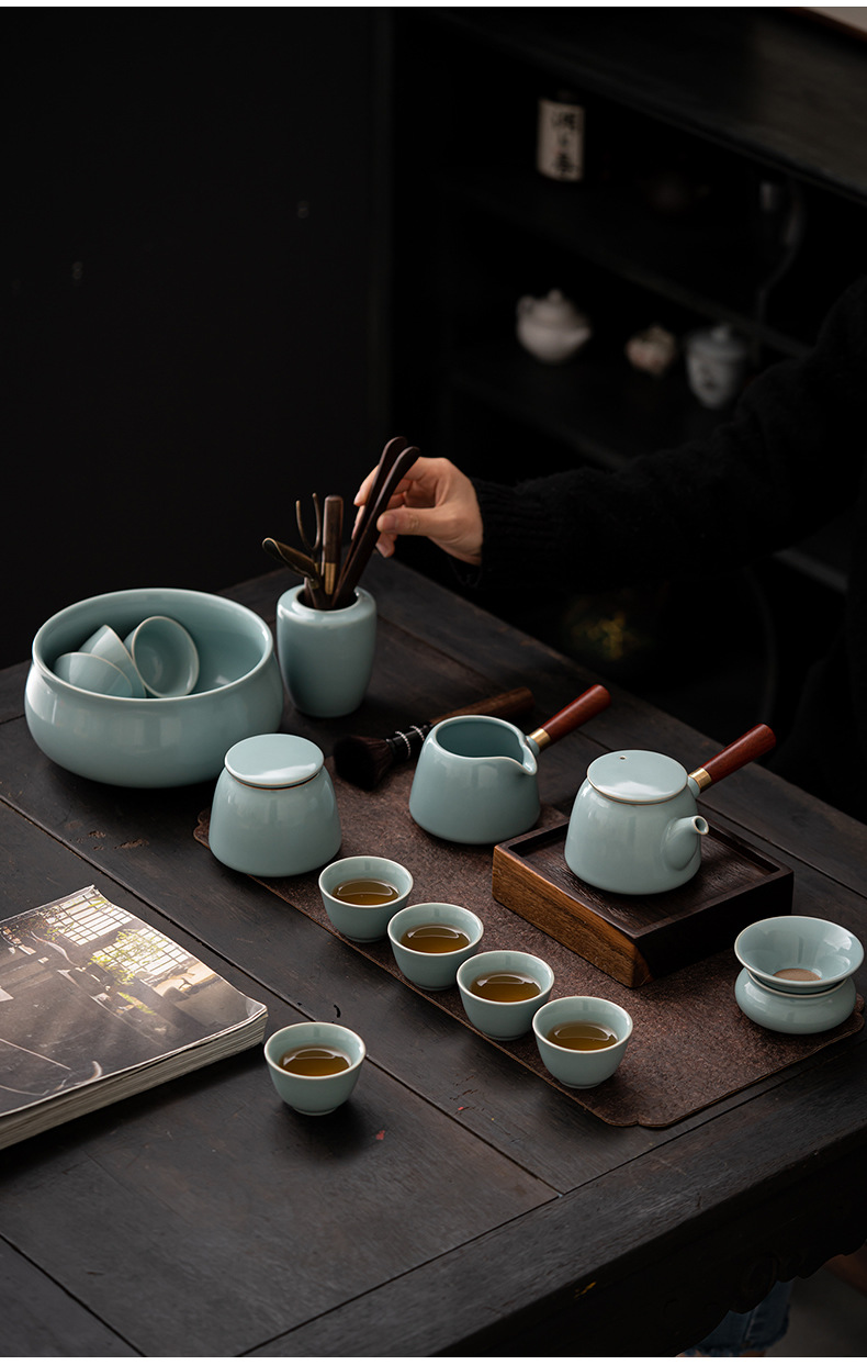 台湾柏彩釉汝窯茶器セット家庭用中国式高級汝窯泡急須大師級セット茶器