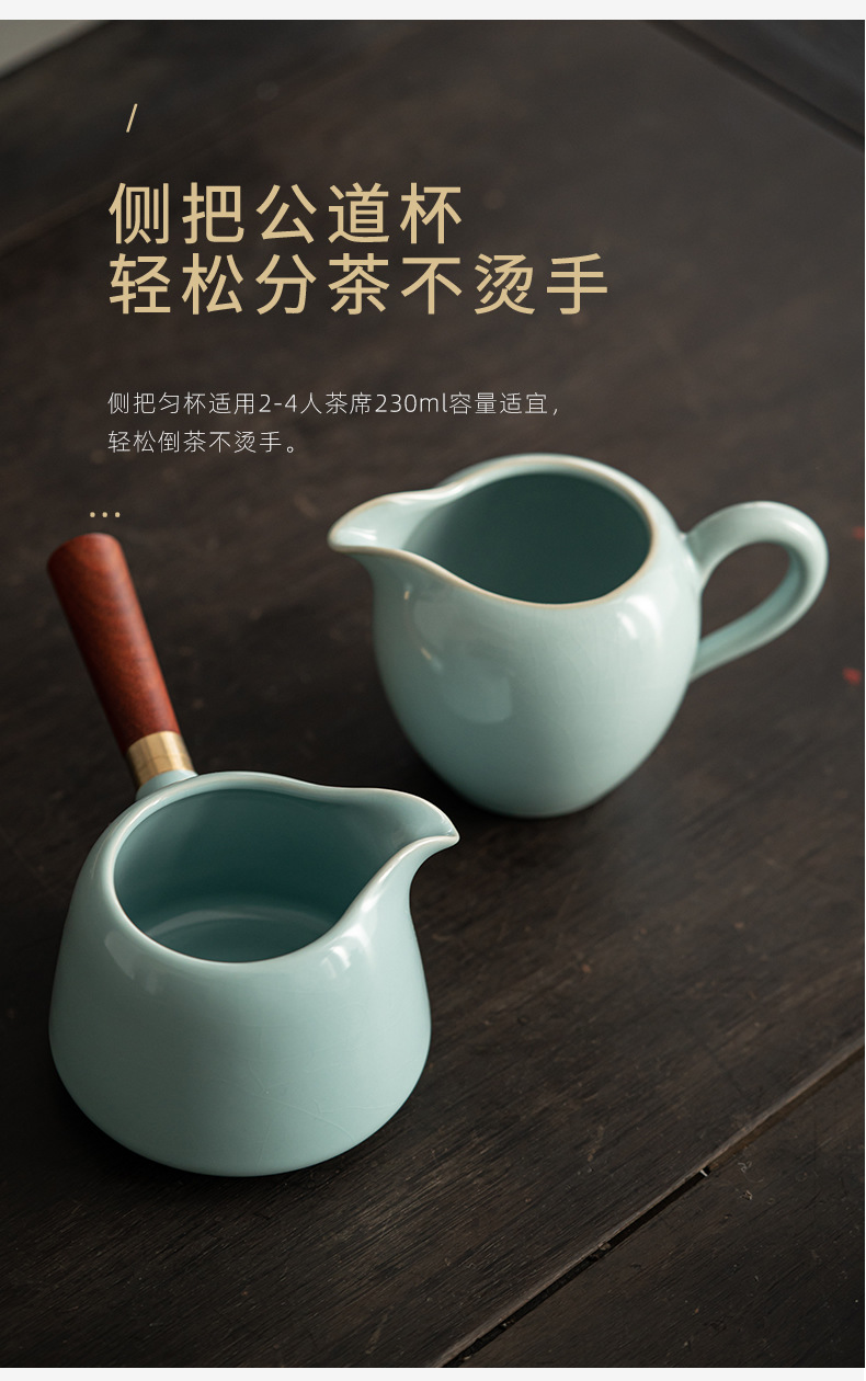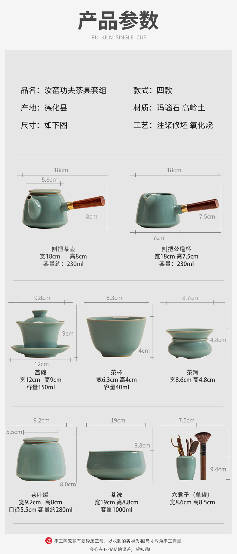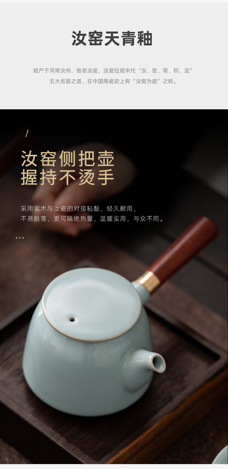 汝窑陶瓷功夫茶具一整套高端套装侧把壶复古家用泡茶壶礼盒装高档