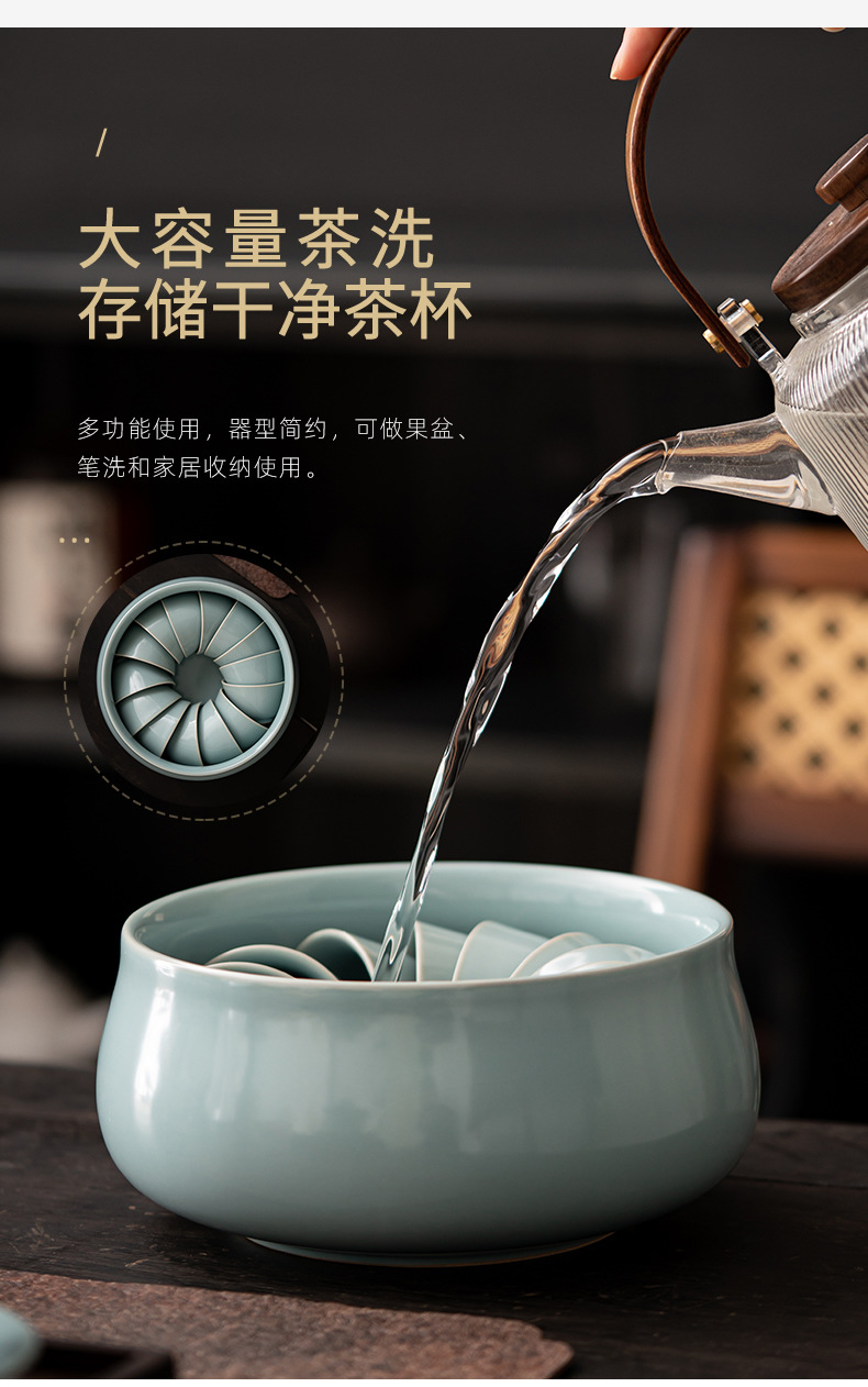 汝窯茶器セット15点、カンフー汝磁開片、茶器一式、茶壺、茶洗、茶葉入れ、レトロ茶碗