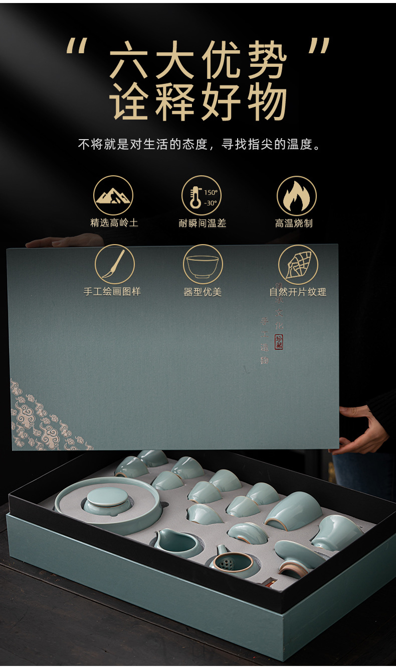 セラミック汝窯氷花釉ティーセット、開花、家庭用、会社イベント、ビジネス記念品ロゴの完全なセット