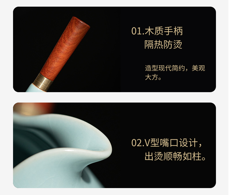 汝窯陶磁器茶器セット家庭用軽豪華高級手掴み壺茶主人杯実用ビジネスお土産