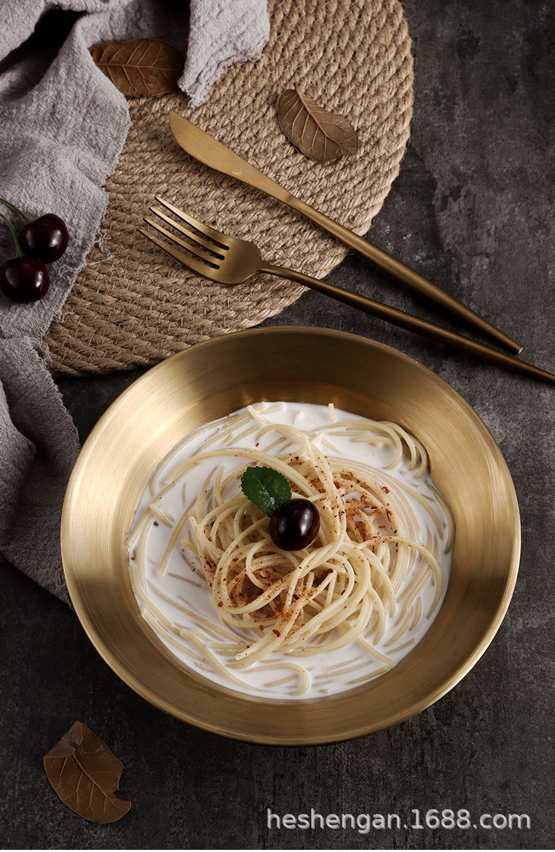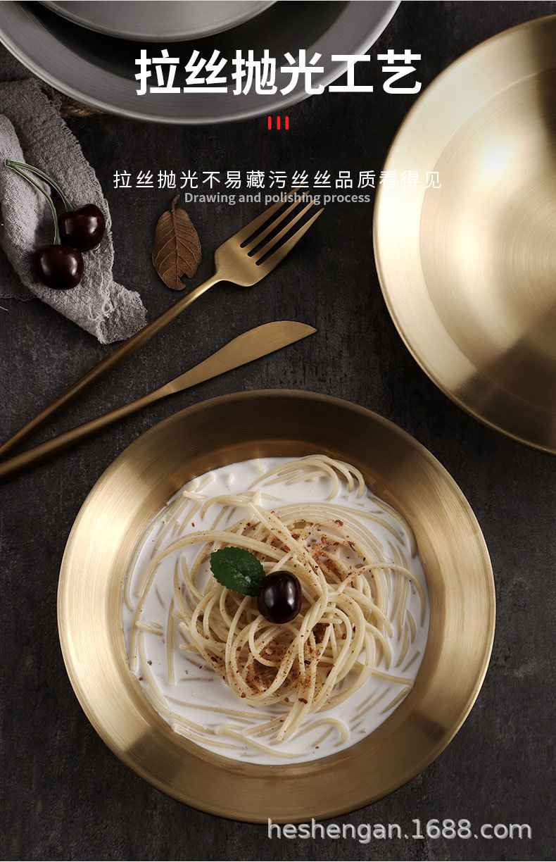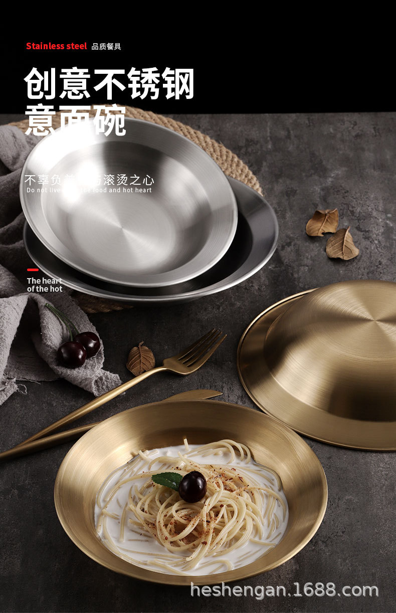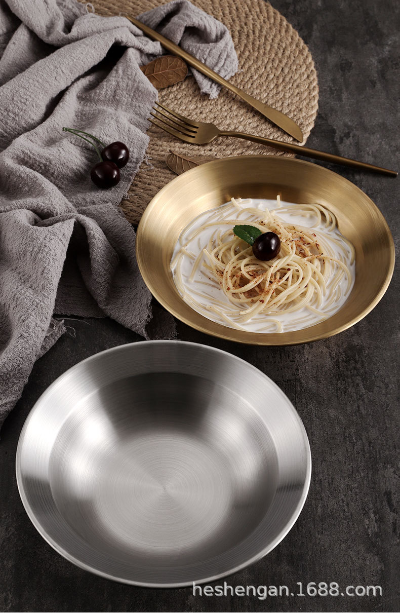 韓国式ステンレス料理皿レトロパスタ皿洋食皿サラダ皿工業風深円料理皿ザリガニ皿