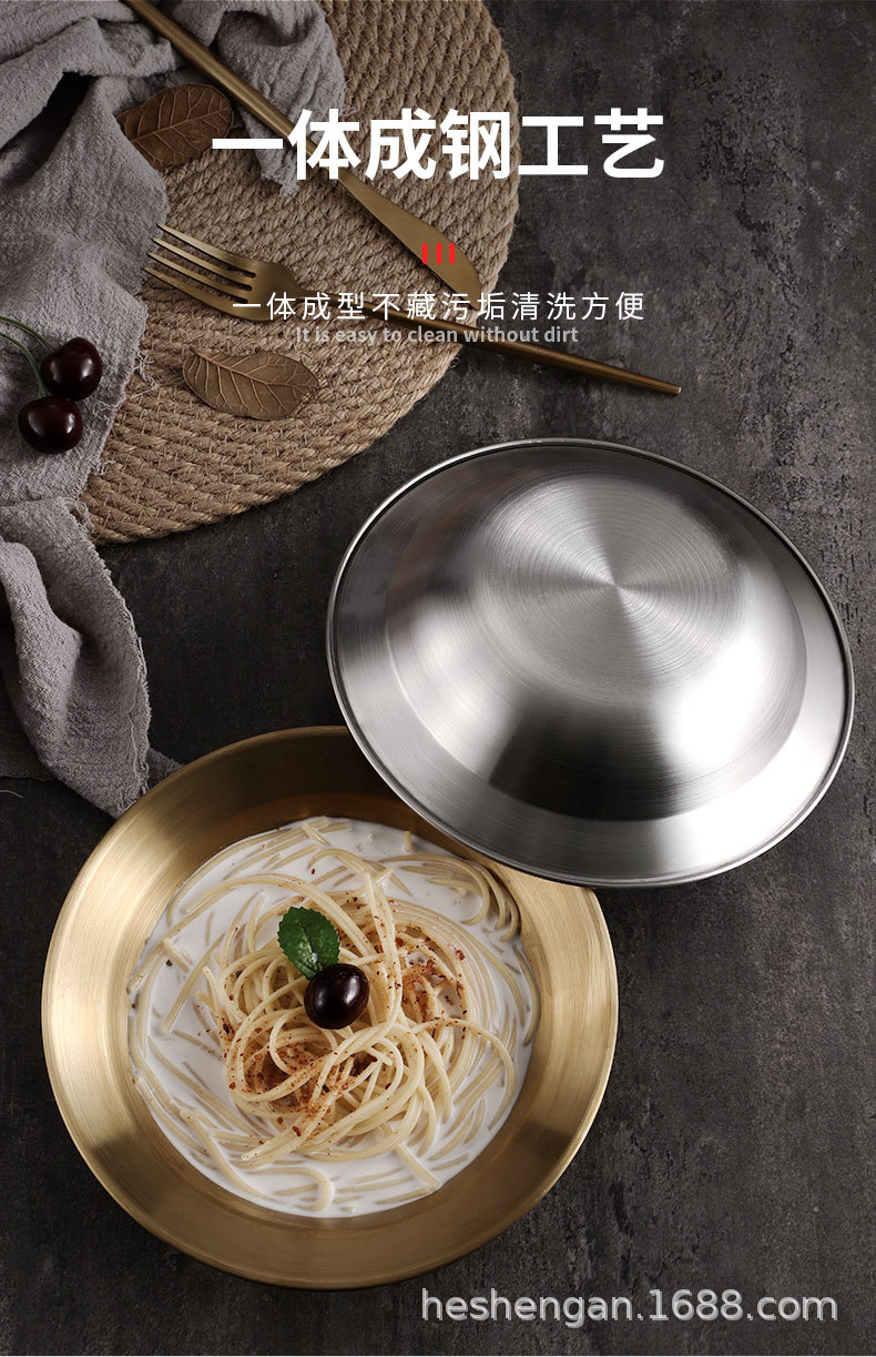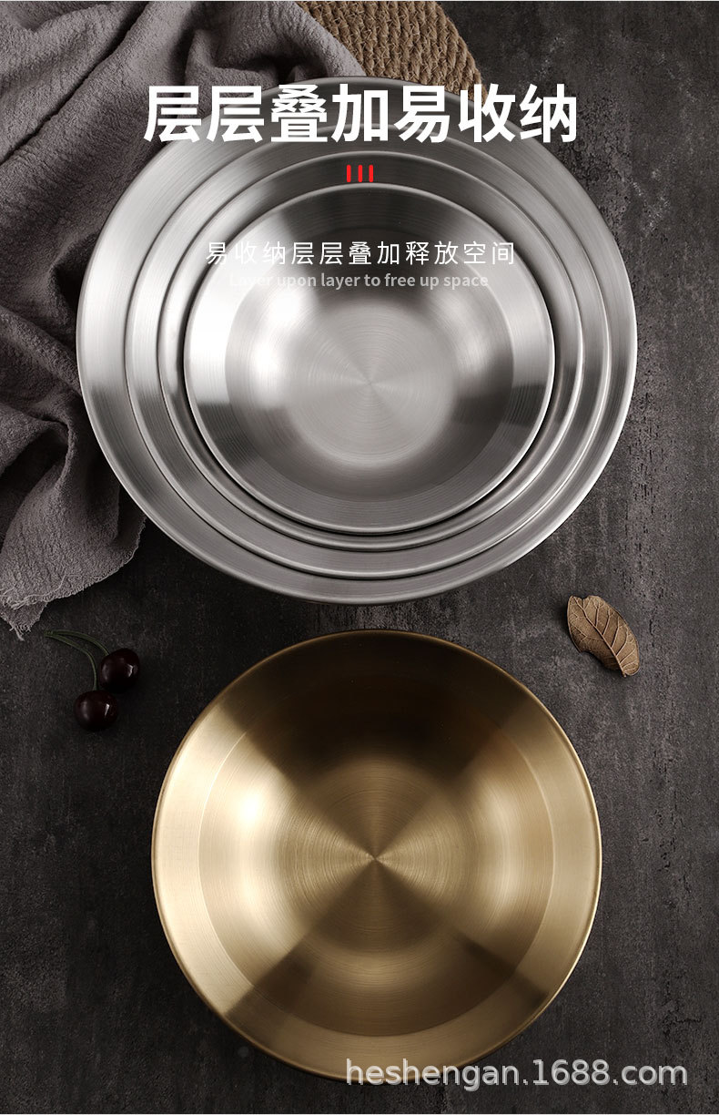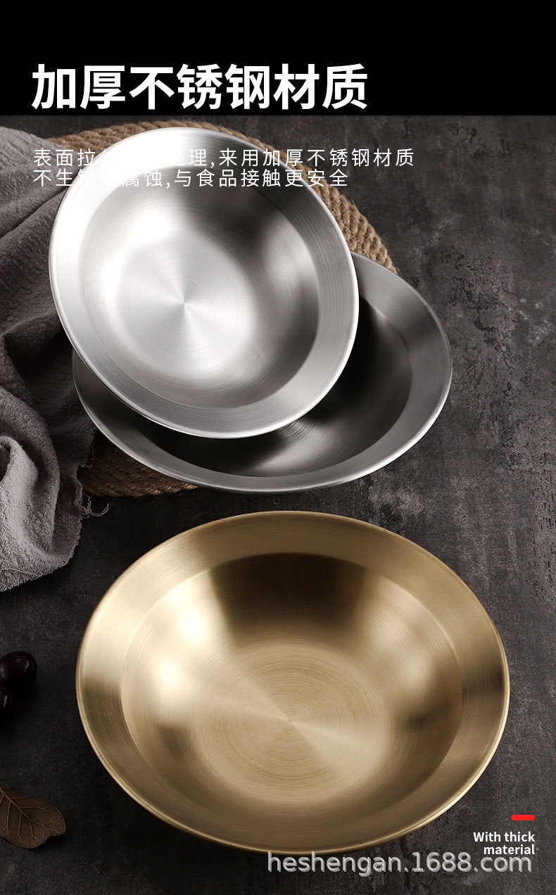 工場直売日本式洋食金色ステンレス浅盤韓国式平底トレー浅盤商用バーベキュー盤
