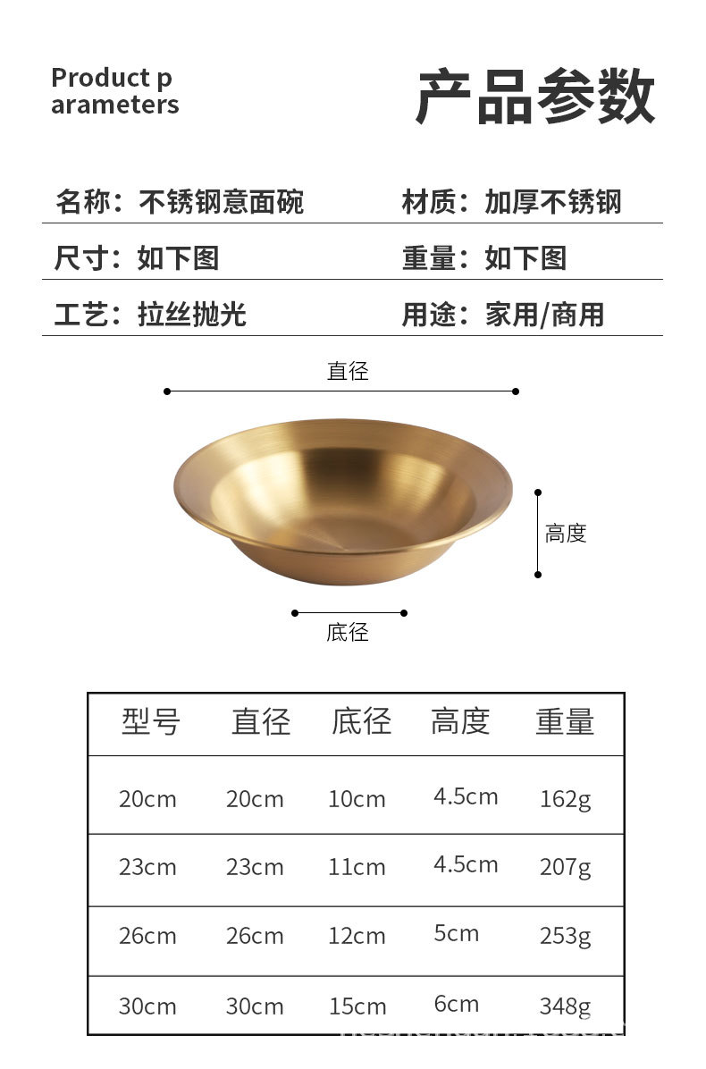 韓国式ステンレスのザリガニの鉢は厚い麦わら帽子の円盤の料理の皿のスープの深皿のパスタのサラダの皿の工場は直接販売します。