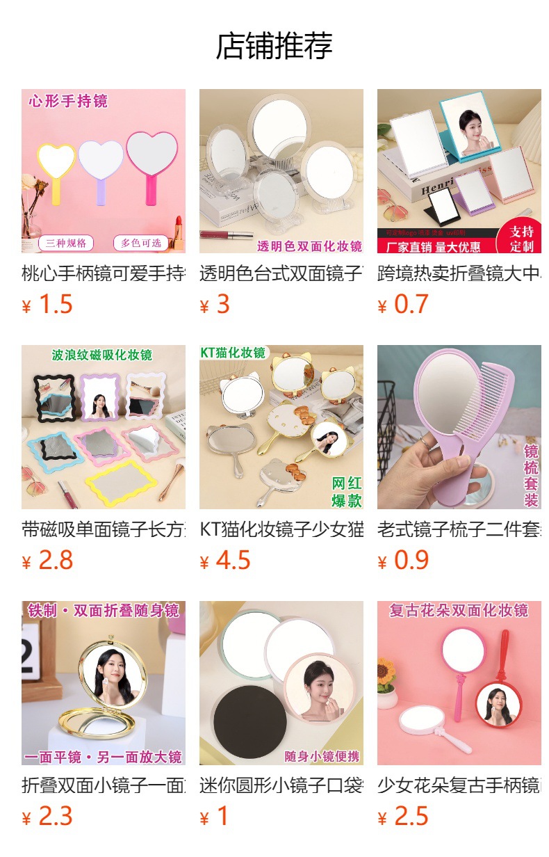 拡大鏡付き半透明ミラー両面卸売ポータブルビューティーサロンドレッシングハンドヘルドハンドル化粧鏡