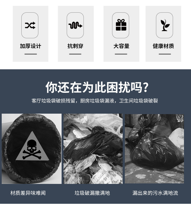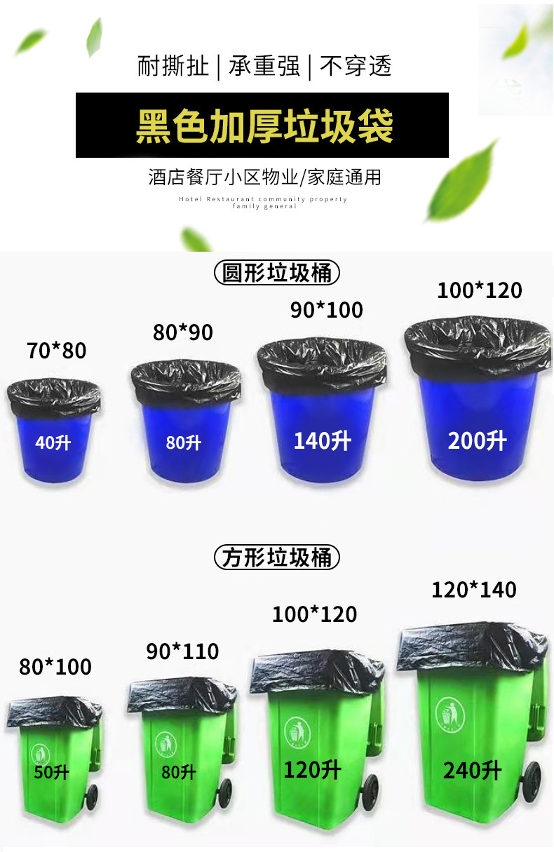 黒色ゴミ袋、業務用厚手使い捨てビニール袋、ホテル特厚卸売大型新素材清掃袋