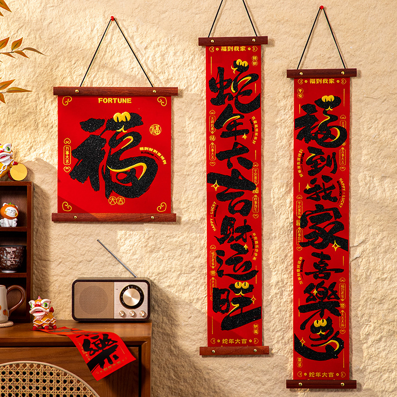 磁気式2026年新築祝い対聯 高級植毛装飾 引っ越し祝い 新居祝い 装飾飾り 祝福文字吊り飾り
