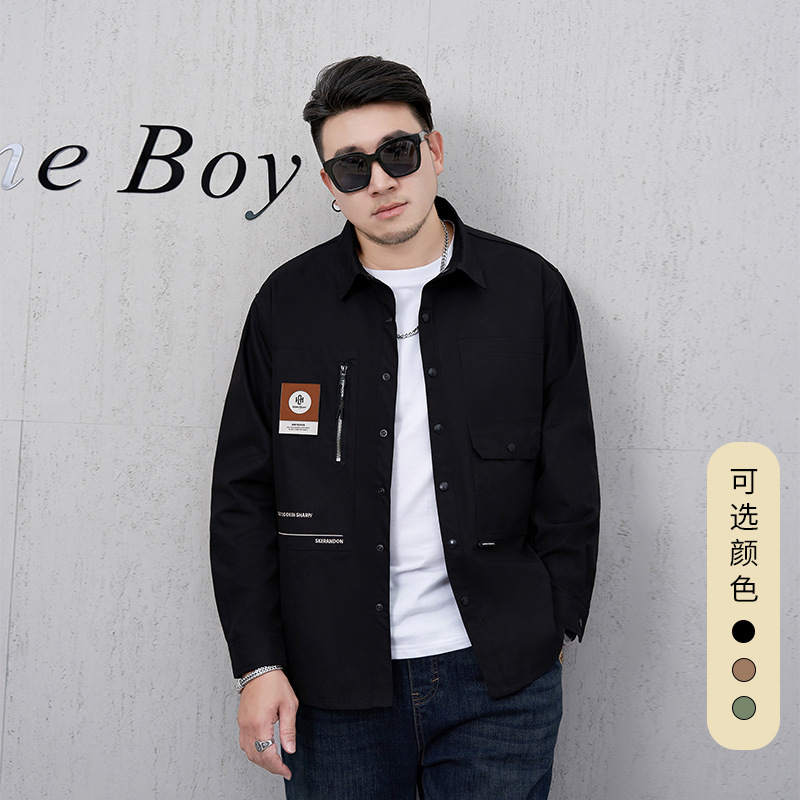 ワークジャケットシャツ 大きいサイズ メンズ 秋 トレンド シングルブレスト ラペル 多ポケット ゆったり メンズシャツジャケット