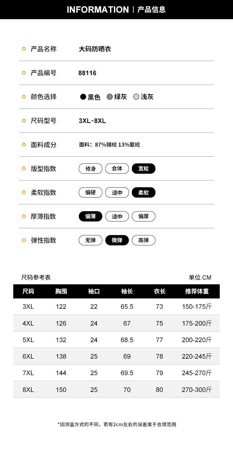 サイズ 3xl/150-175斤,4xl/175-200斤,5xl/200-220斤,6xl/220-245斤,7xl/245-270斤,8xl/270-300斤