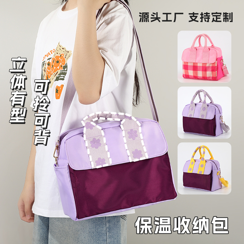 新款彩色糖果色手提保温包户外便当冰包上班族斜跨高颜值饭盒包