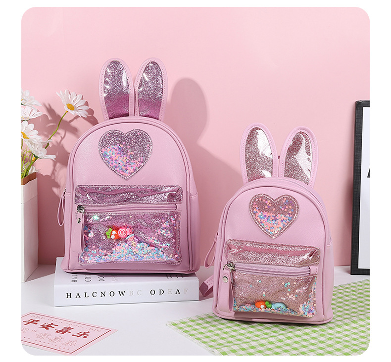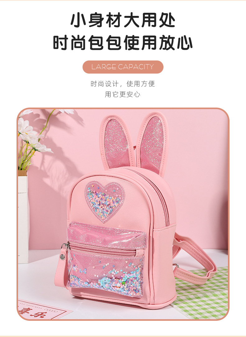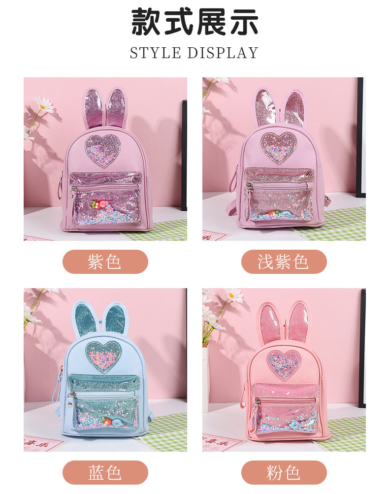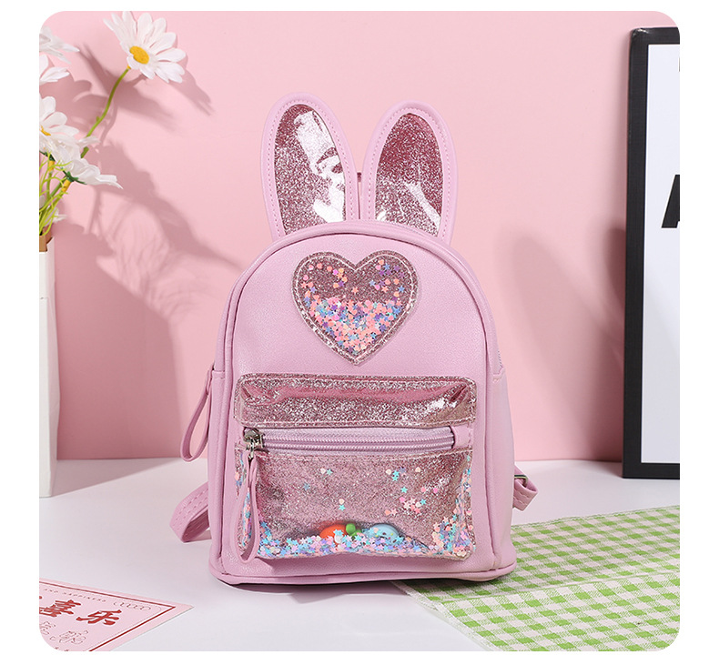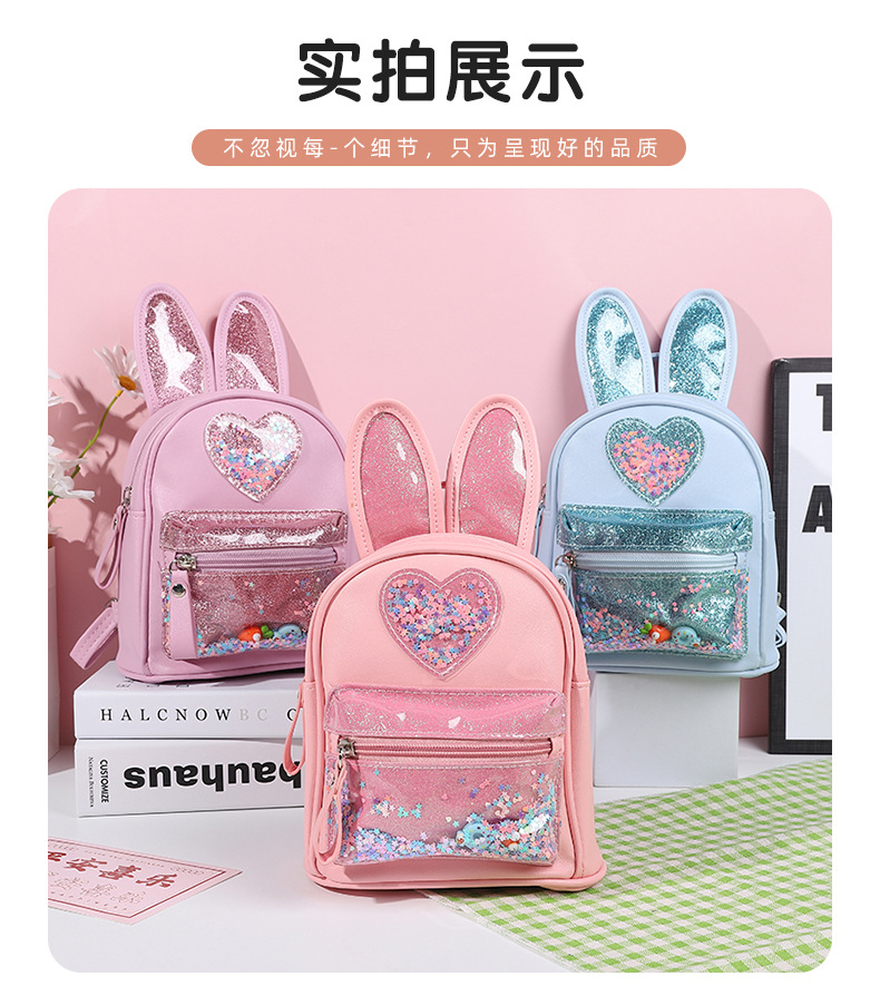 新しい子供用バックパック、ファッショナブルなスパンコール付きのかわいいウサギのミニバックパック、カジュアルなお出かけ、幼稚園用スクールバッグ、女性用既製在庫