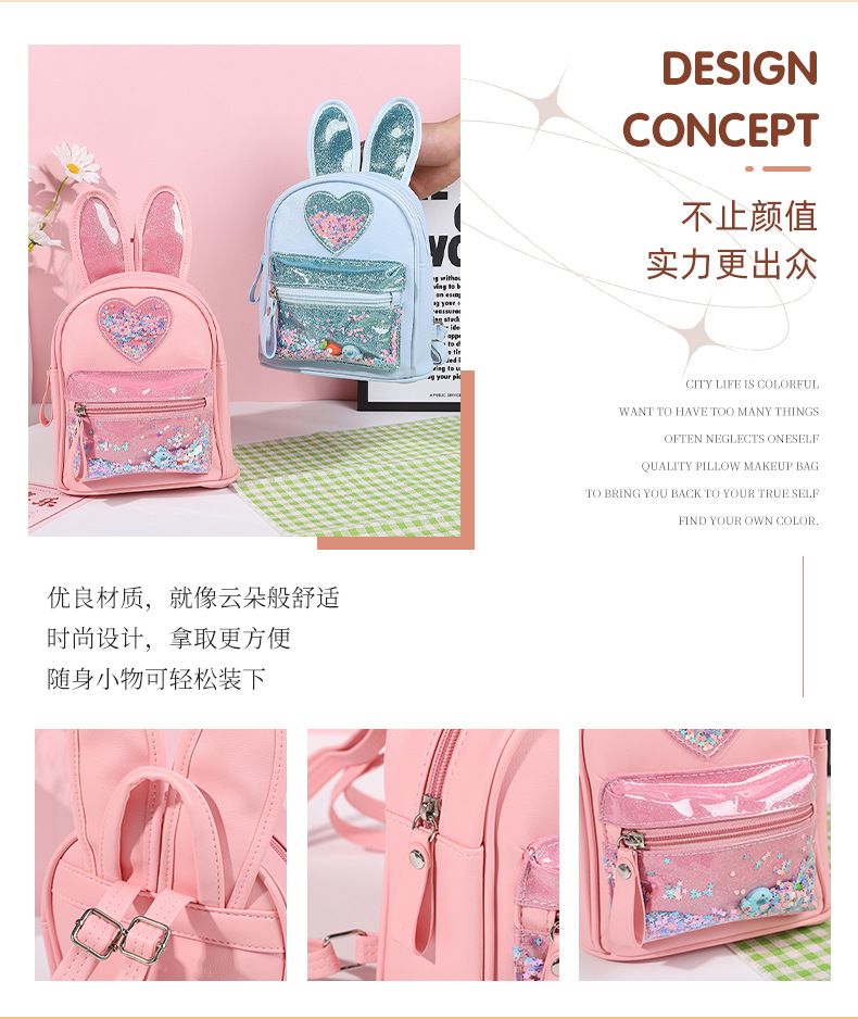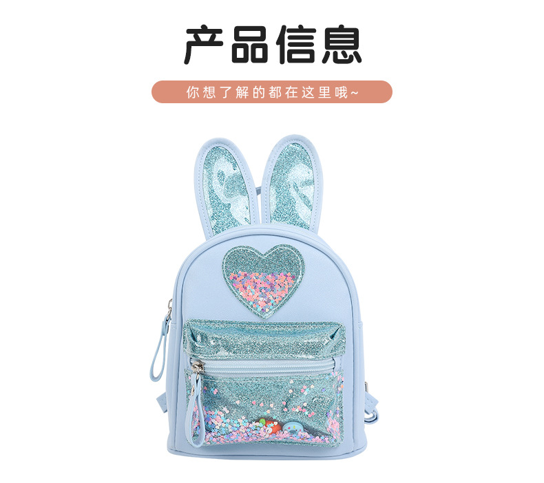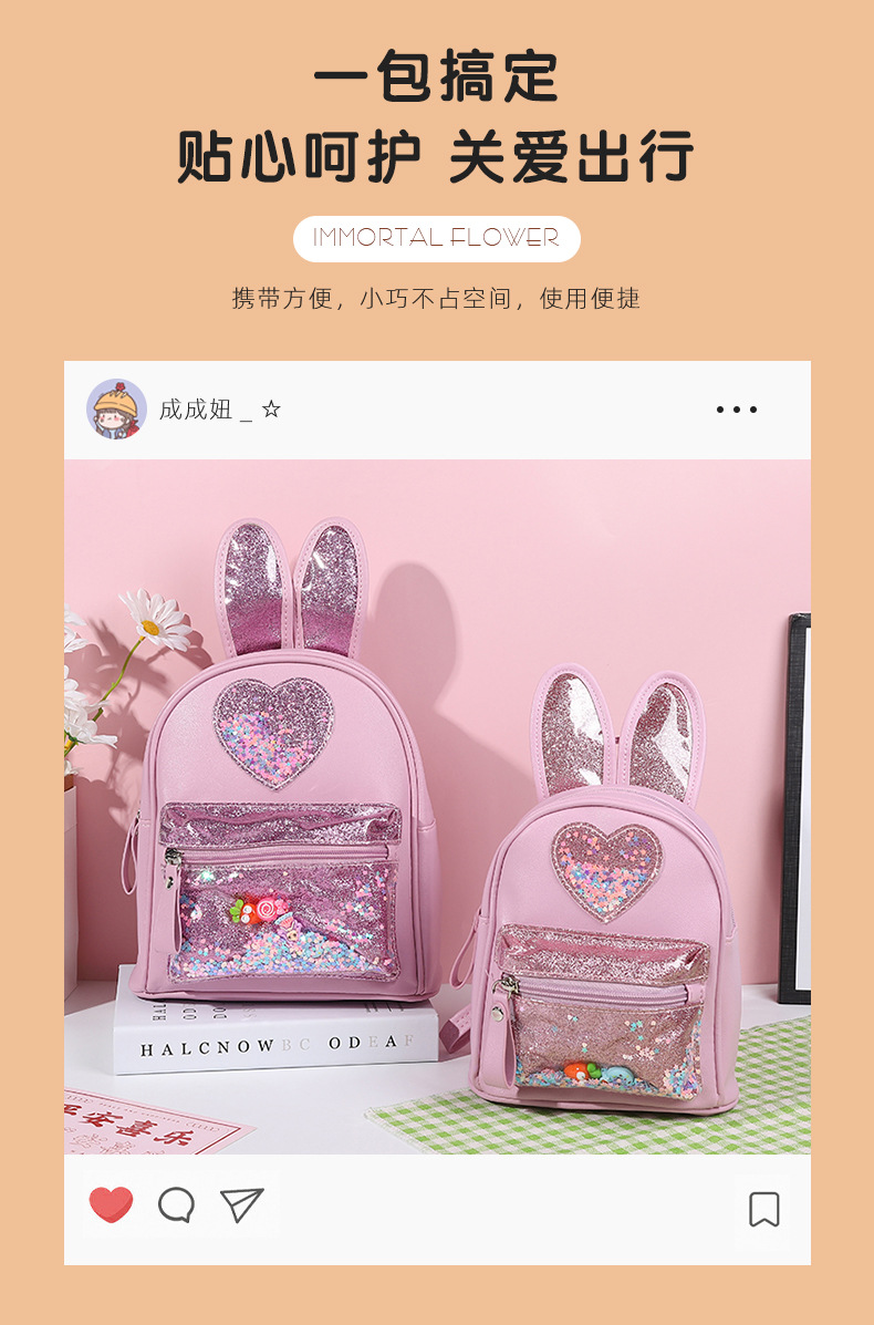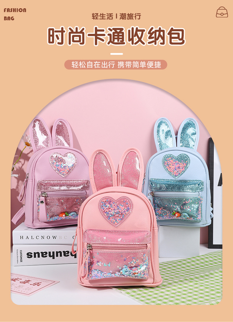 新しい子供用バックパック、ファッショナブルなスパンコール付きのかわいいウサギのミニバックパック、カジュアルなお出かけ、幼稚園用スクールバッグ、女性用既製在庫