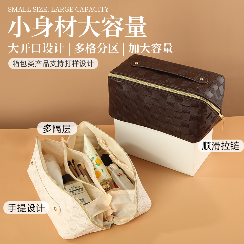 ファッショナブルなチェック柄の女性用化粧品バッグ、見栄えの良いポータブル大容量防水トイレタリーバッグ、旅行用収納バッグ