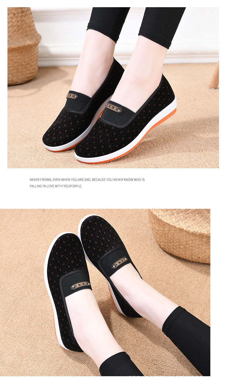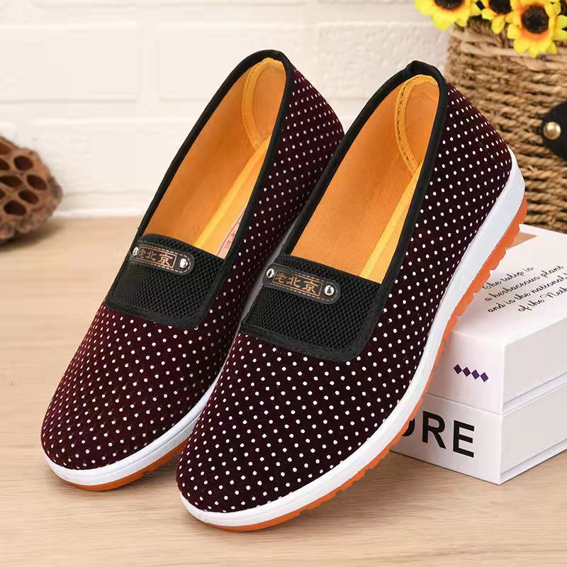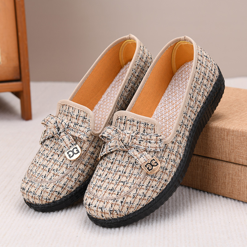 2025 春の新スタイルチェック柄古い北京布靴ママの靴スリッポン快適なソフトソール通気性のある中高年靴