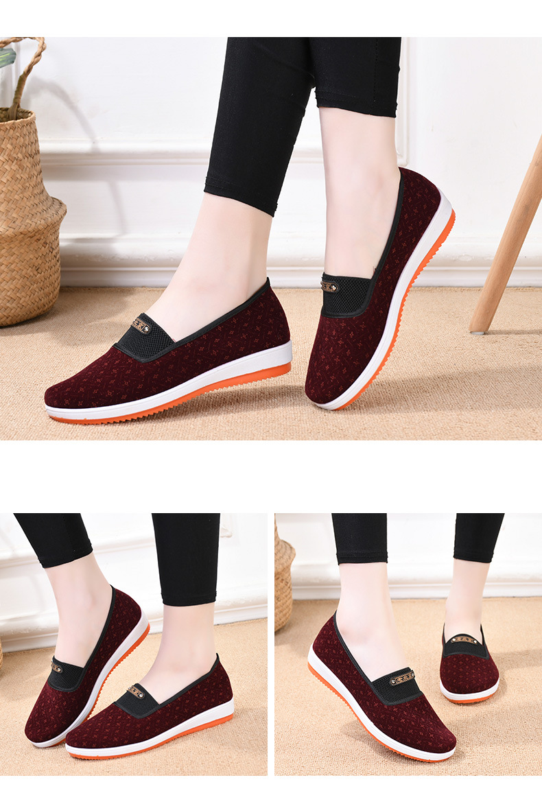老年の靴の女性の古い北京の布の靴の春と秋の平底の耐磨耗のレジャーの1足は女性のお母さんの靴の柔らかい底の布の靴を漕ぎます。