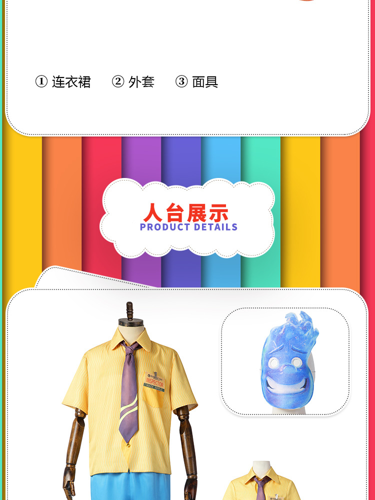 火の要素のドレス,水属性スーツ(シャツ+ショーツ+ネクタイ+バッジ)),火の要素のマスク,水の要素のマスク,火のエレメントジャケット