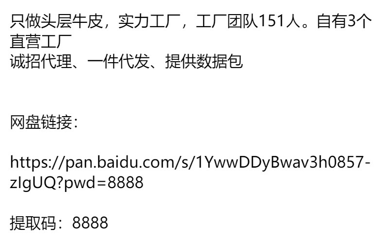 只做头层牛皮,实力工厂,工厂团队151人。自有3个直营工厂诚招代理一件代发、提供数据包业务治谈:020-2817197615024269567