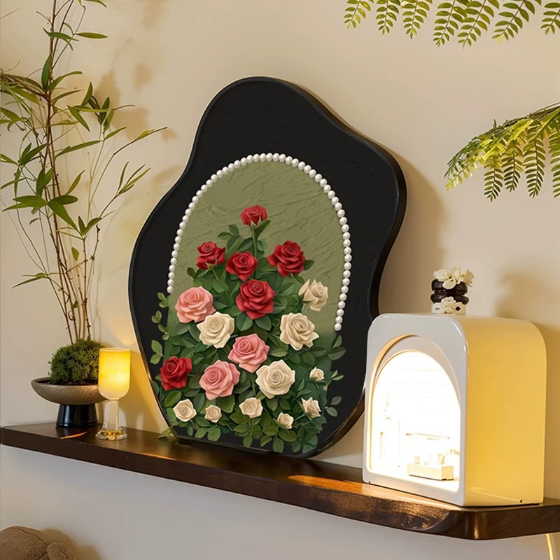 珍珠玫瑰中古风桌面斗柜小摆台装饰画复古艺术摆件高级感小众摆画