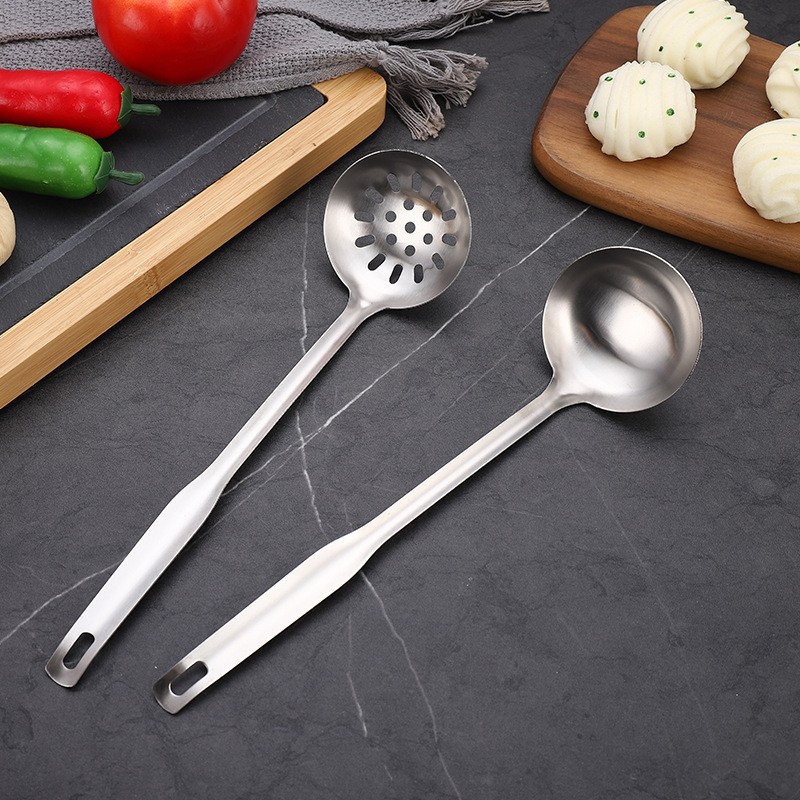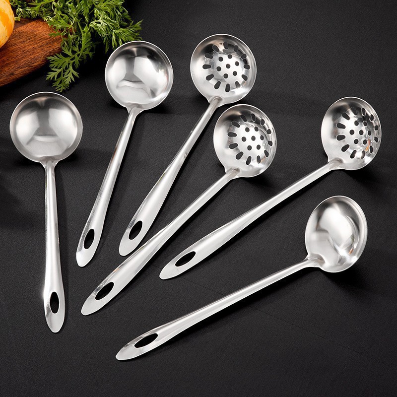 厚い角頭の鍋のスプーンはステンレスの料理の台所のスプーンを漏らします。
