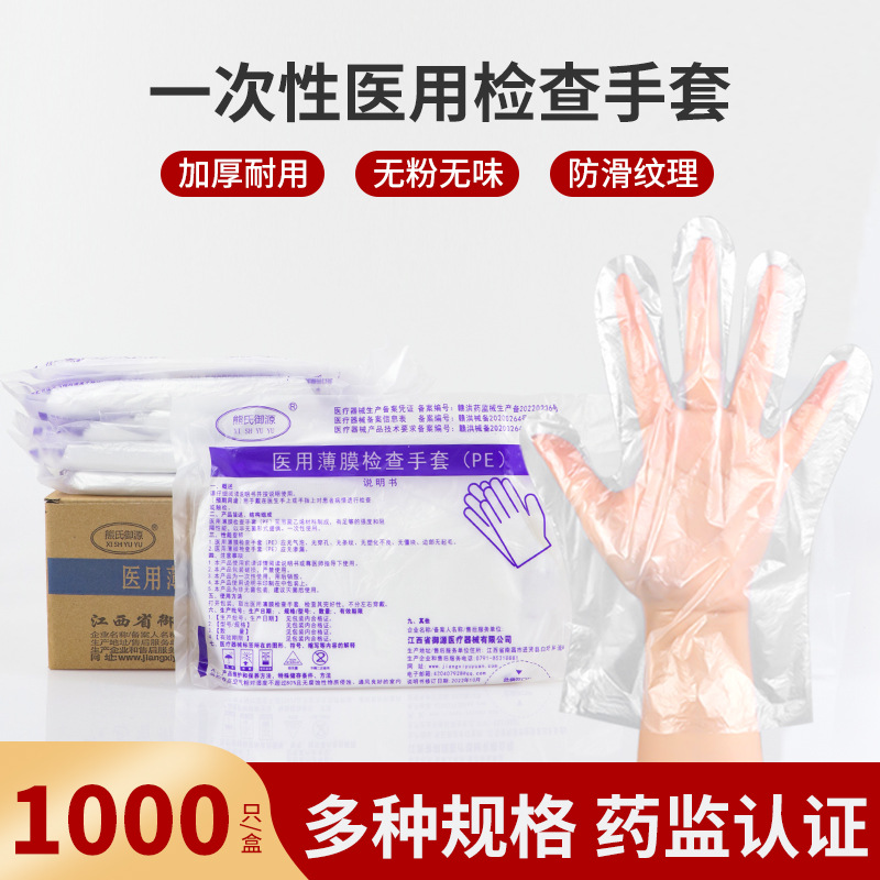 医療検査用手袋 使い捨て透明PE厚手手袋 家庭用 飲食店 テイクアウト 美容室 フィルム手袋