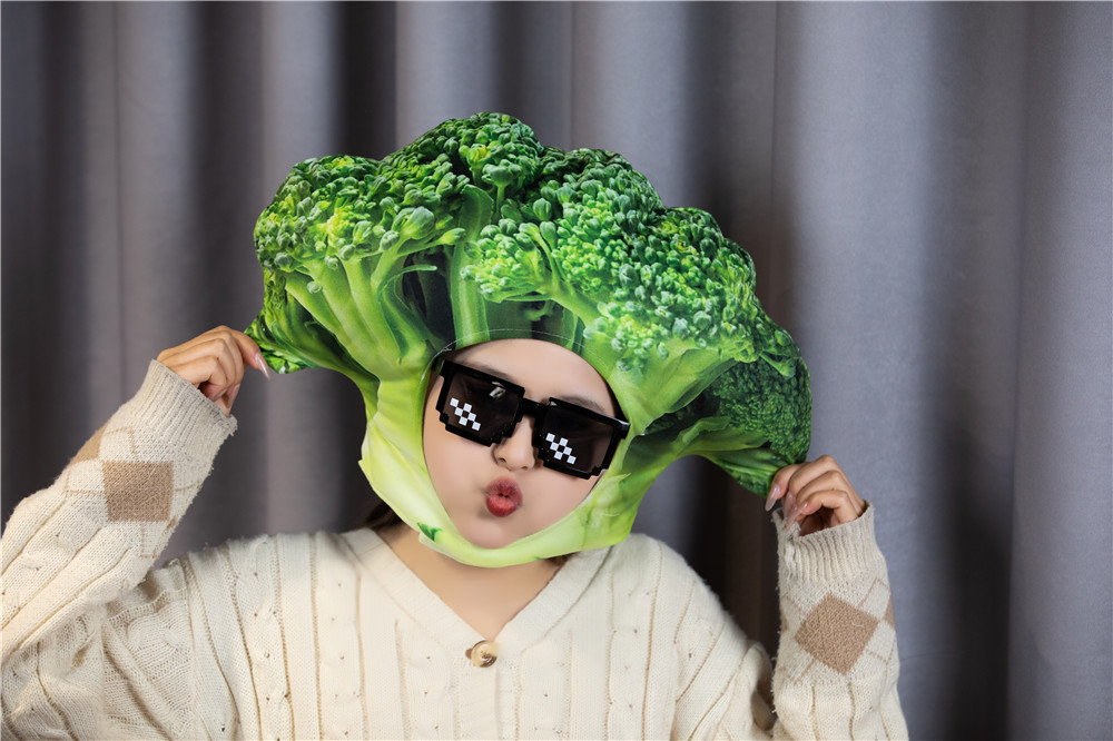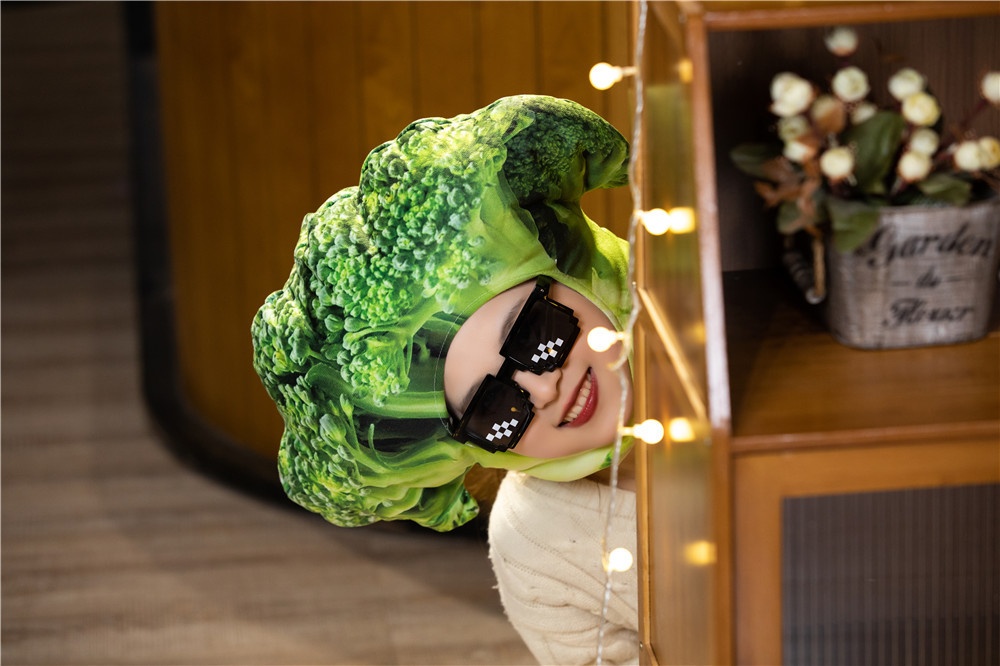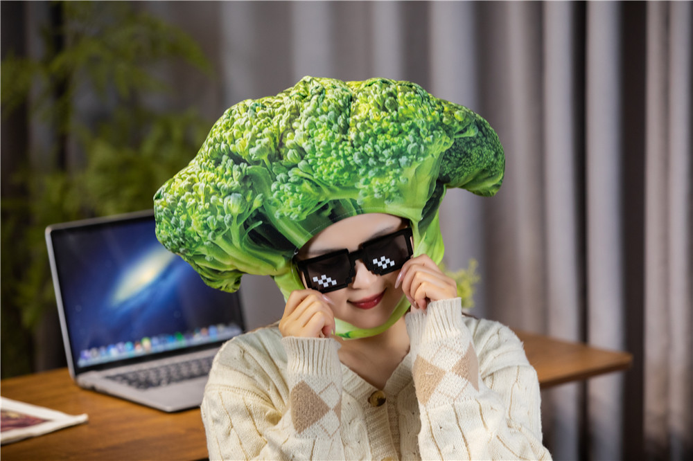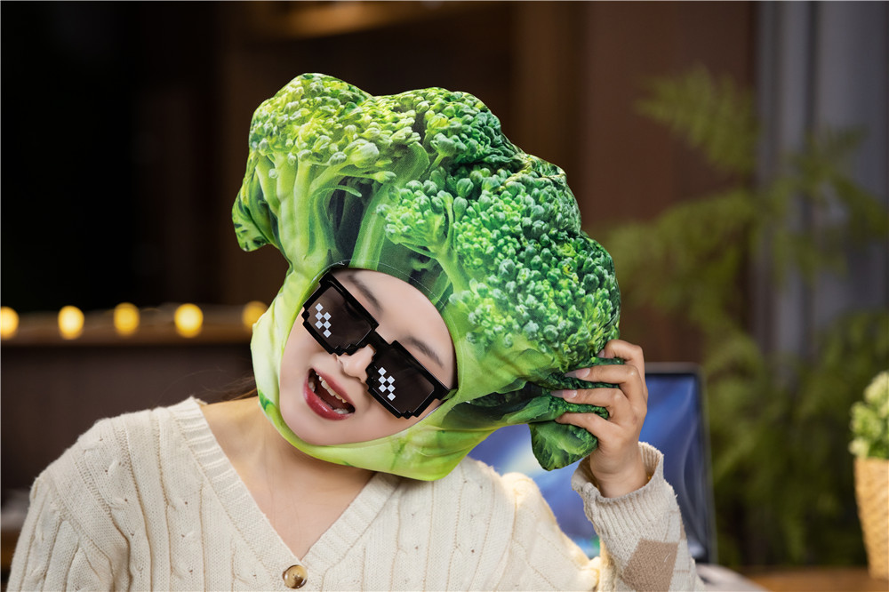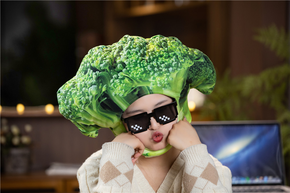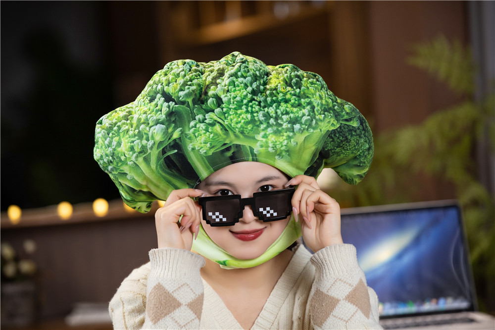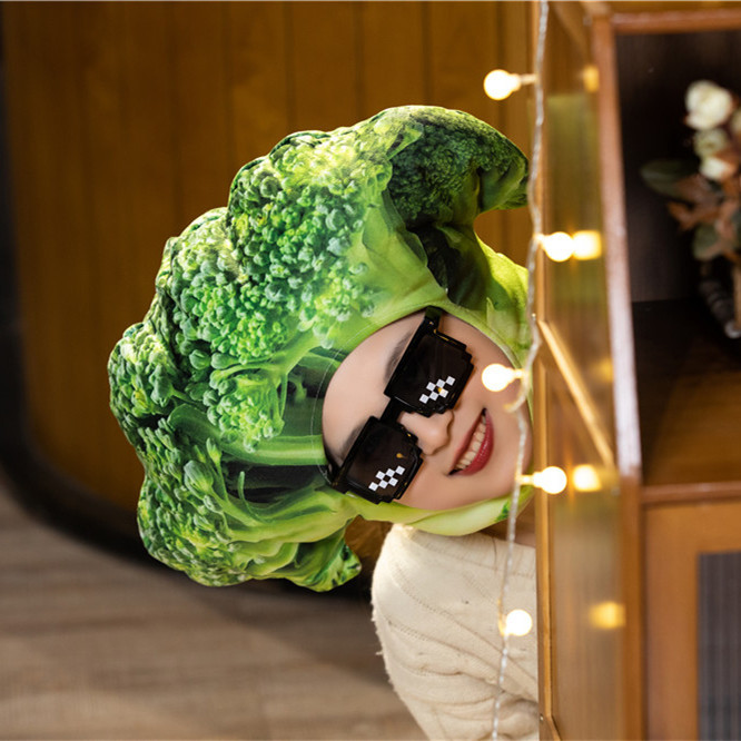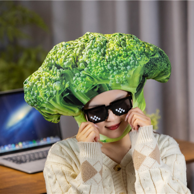 卸売りブロッコリーの帽子のぬいぐるみ野菜の写真撮影道具写真道具漫画の頭カバー道具