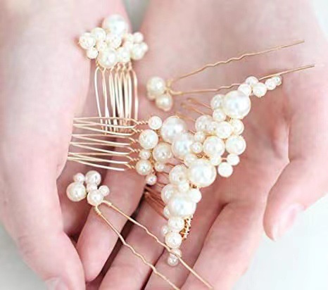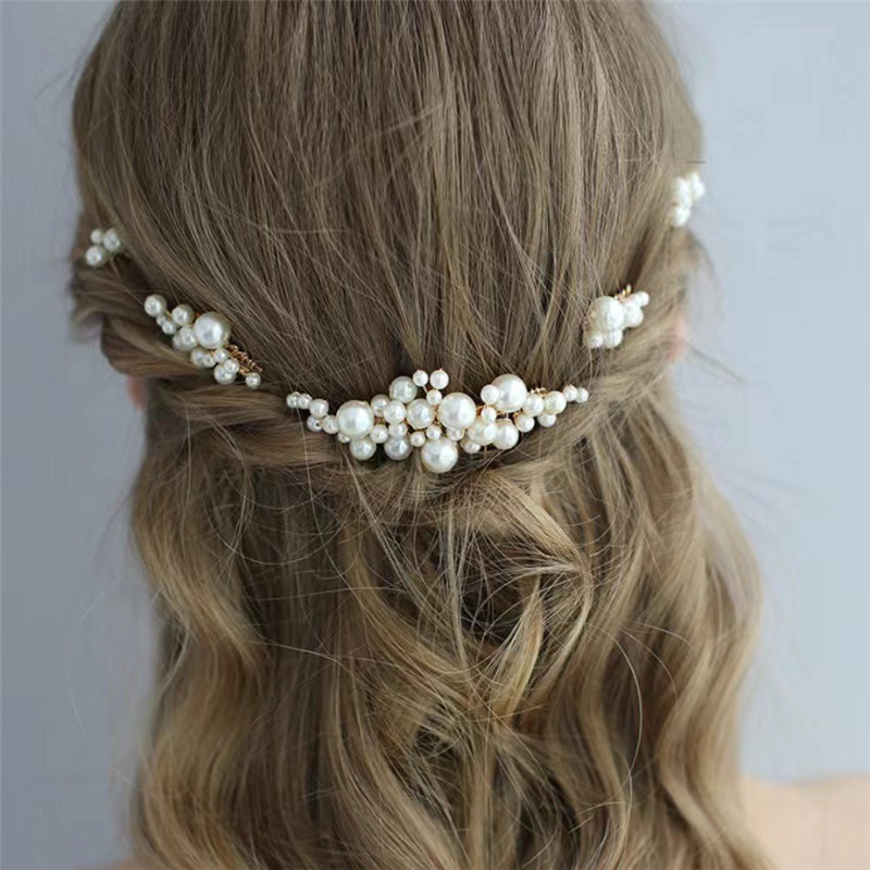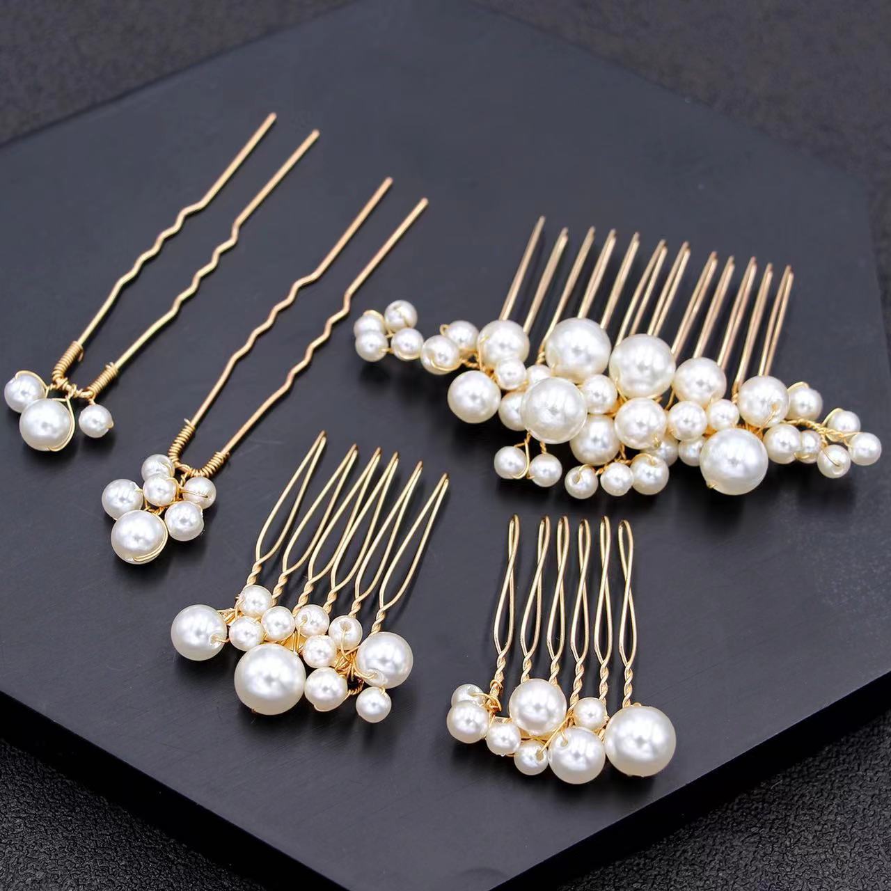 国境を越えた真珠にドリルを入れたu型ヘアピンの髪飾り花嫁の髪飾りメッキ髪櫛