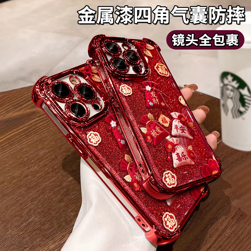 发财福袋适用iphone17新年系列手机壳15promax电镀苹果16闪粉14女