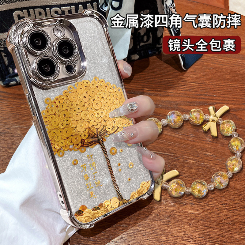 金钱树手链适用苹果17promax手机壳iphone16电镀防摔14细闪15硅胶
