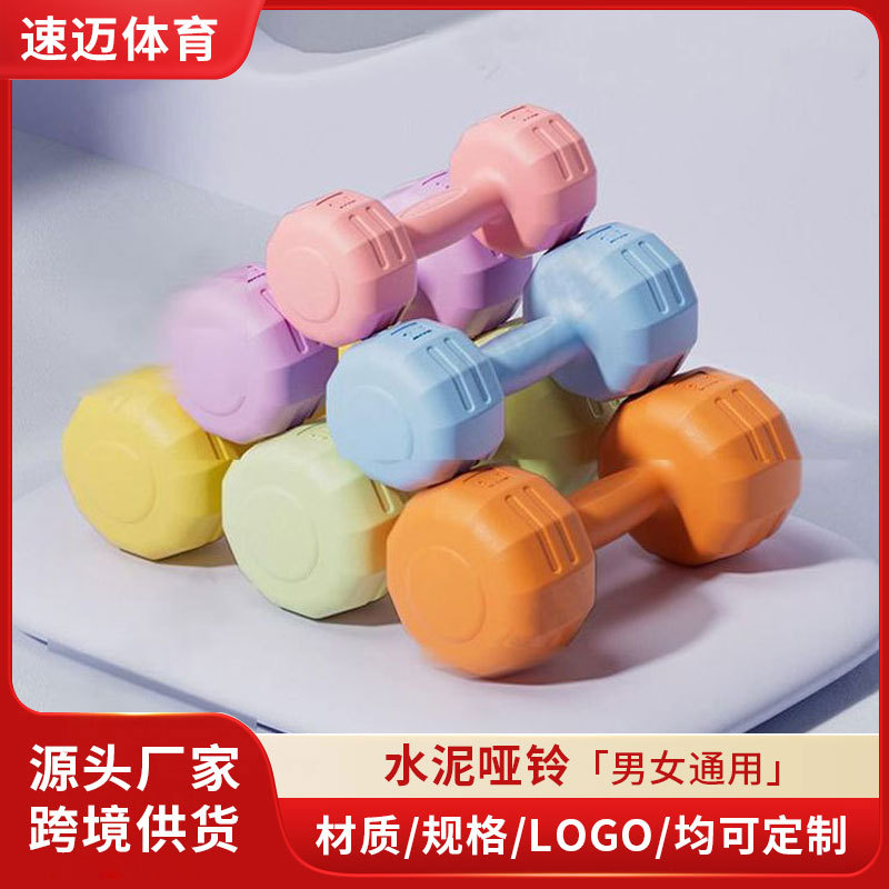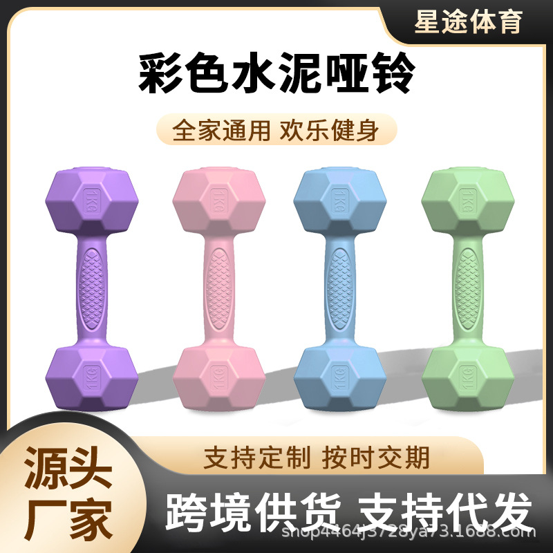 家用小哑铃女士家用健身器材深蹲儿童老人练臂肌彩色包胶水泥哑铃