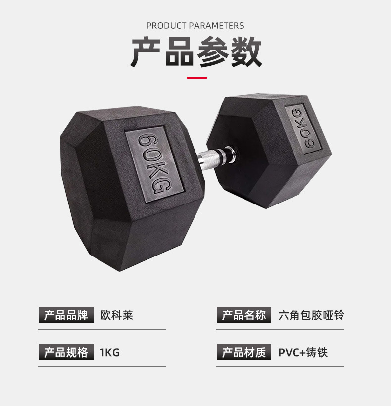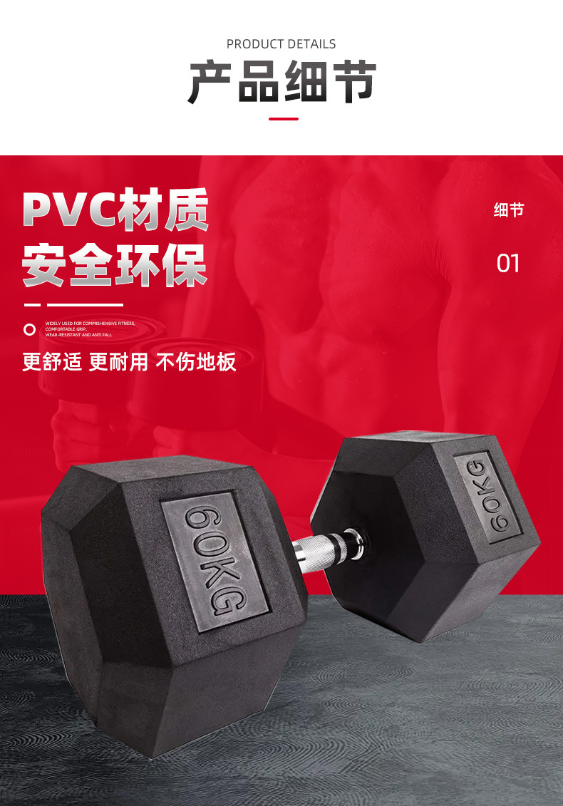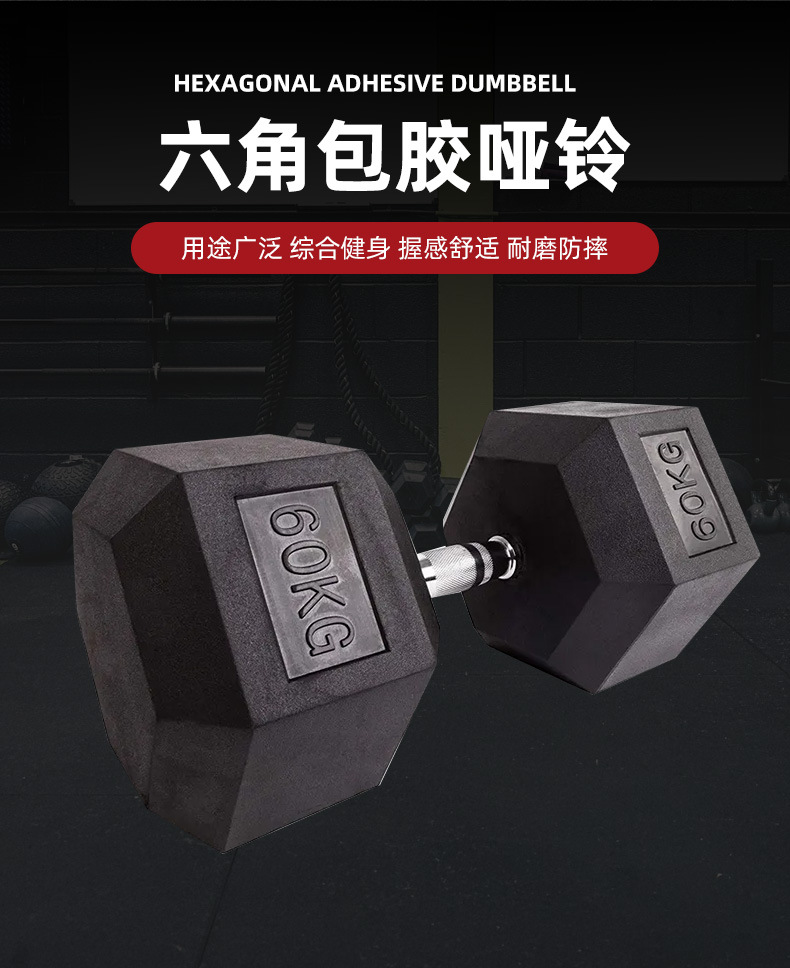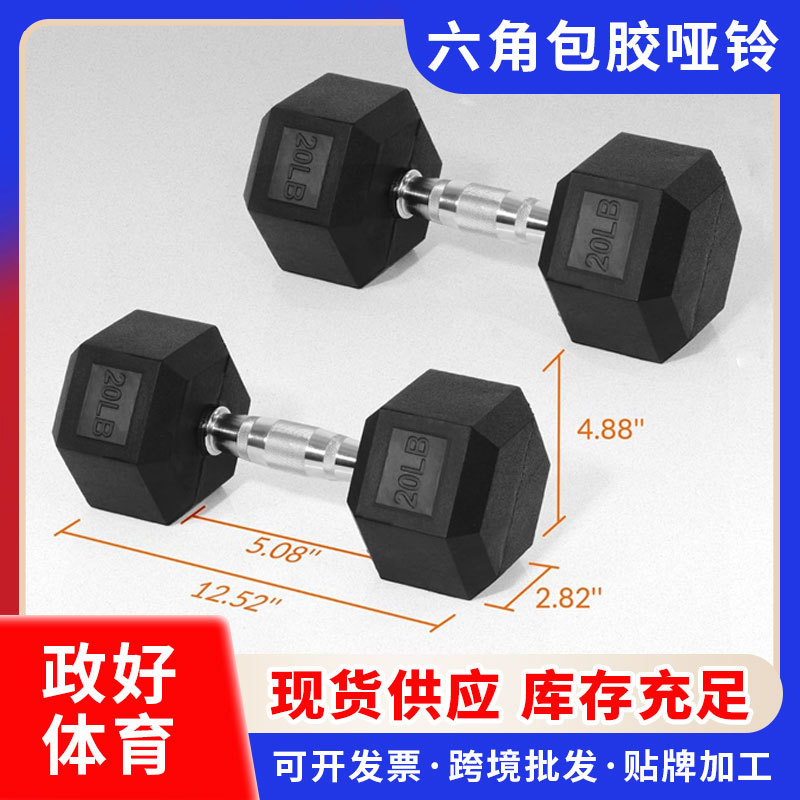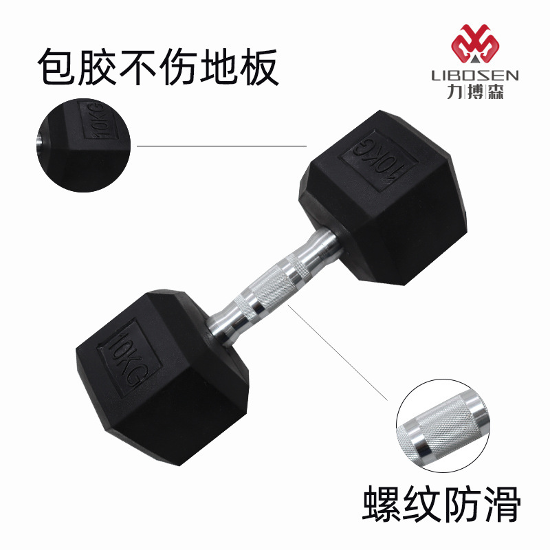 力拍森卸売り六角包ゴムダンベル家庭用商用ジムトレーニング固定ダンベル男性ゴムダンベル