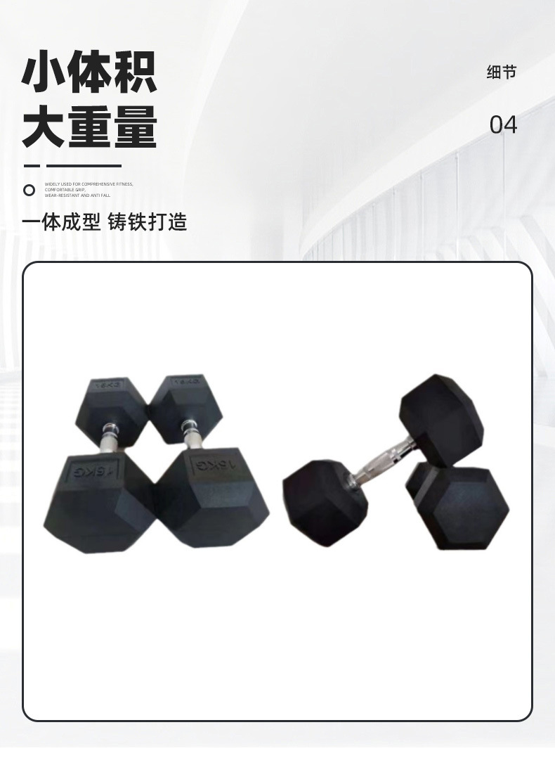 中実六角ダンベル男性フィットネス器材練習腕筋女性包ゴム純鉄ダンベル家庭用運動訓練唖