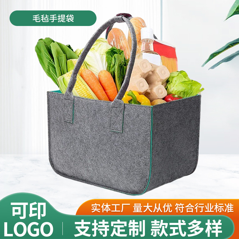 フェルトバッグ手提げ袋不織布野菜バスケット買い物バッグ衣類収納袋グレーフェルトlogoトートバッグ