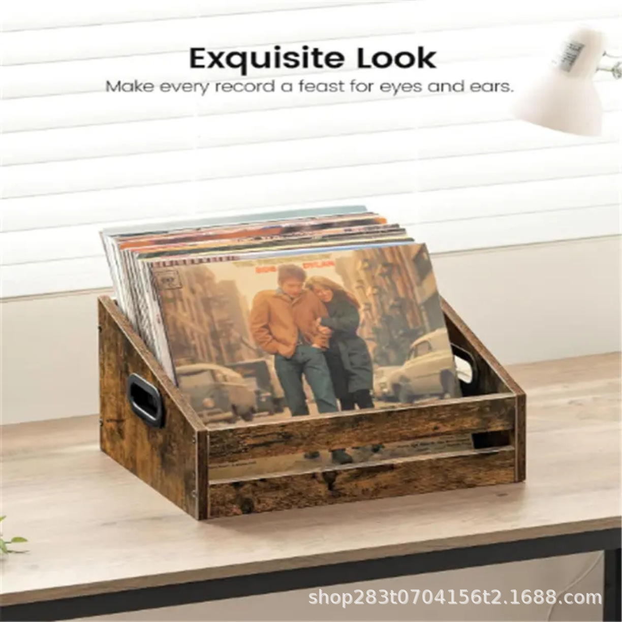 国境を越えた木製ビニールレコード収納バスケット家庭用カントリースタイルビニールレコード収納ボックスビニールレコード収納バスケット
