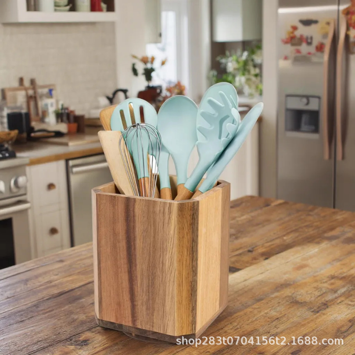 クロスボーダー木製回転ペンホルダーキッチン食器カトラリー収納ボックスドレッシングテーブル化粧ブラシ収納ボックスカトラリーホルダー
