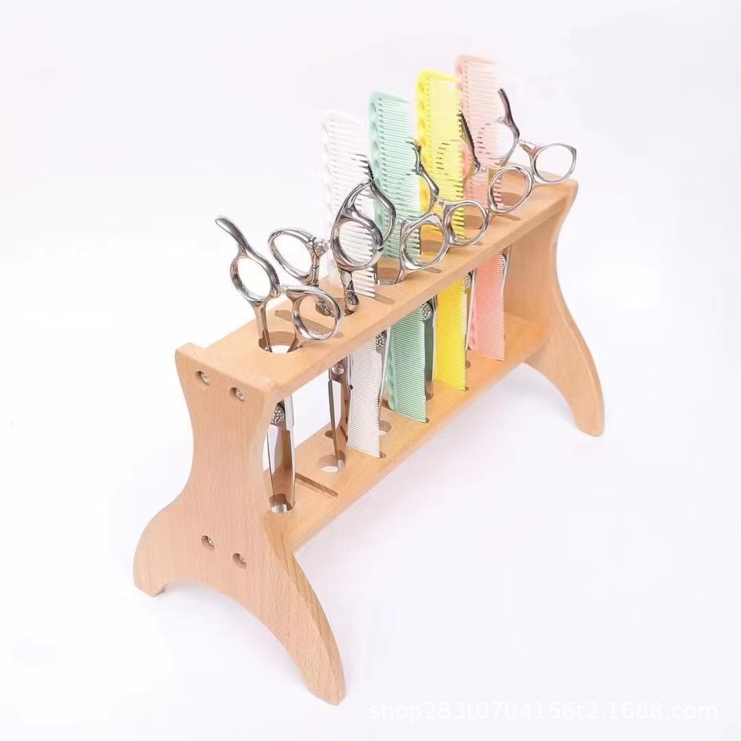 木製スタンドはさみコーム家庭用デスクトップ木製カントリースタイル理髪店バスルーム木製収納スタンド
