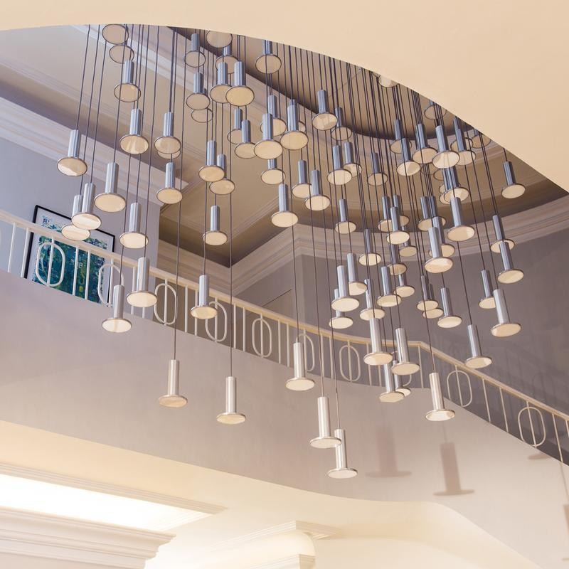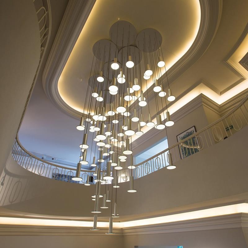 シンプルな寝室のベッドの上のシャンデリアled現代シンプルなフロントレストランのバーアルミ材のアイデア複式階段ランプ