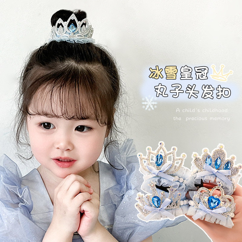 子供の王冠の頭は女の子の赤ちゃんの団子の頭をつかんで女の子の六一王女の髪の馬尾を巻いて固定のヘアピンを掛けます。