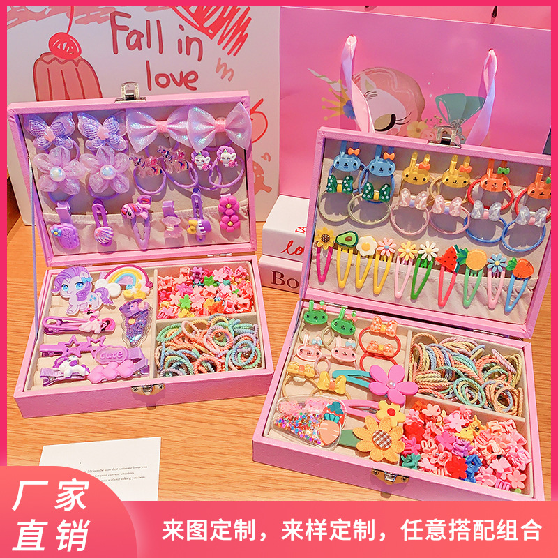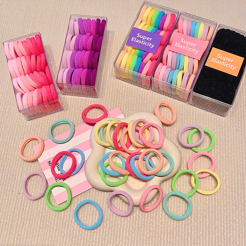 クロスボーダー爆型児童皮筋髪飾りヘアリングアクセサリー収納ケースセット頭ひもカラー高弾力皮筋テンション