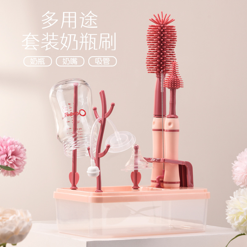 奶瓶刷子硅胶海绵刷婴儿奶嘴吸管刷五合一套装360度旋转清洗奶瓶