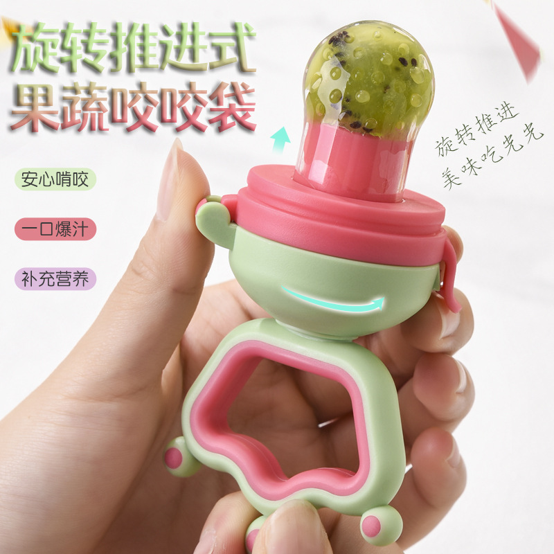赤ちゃんは果物のサプリメントを噛んで食べます。赤ちゃんの乳首は果物の飼育器を食べます。